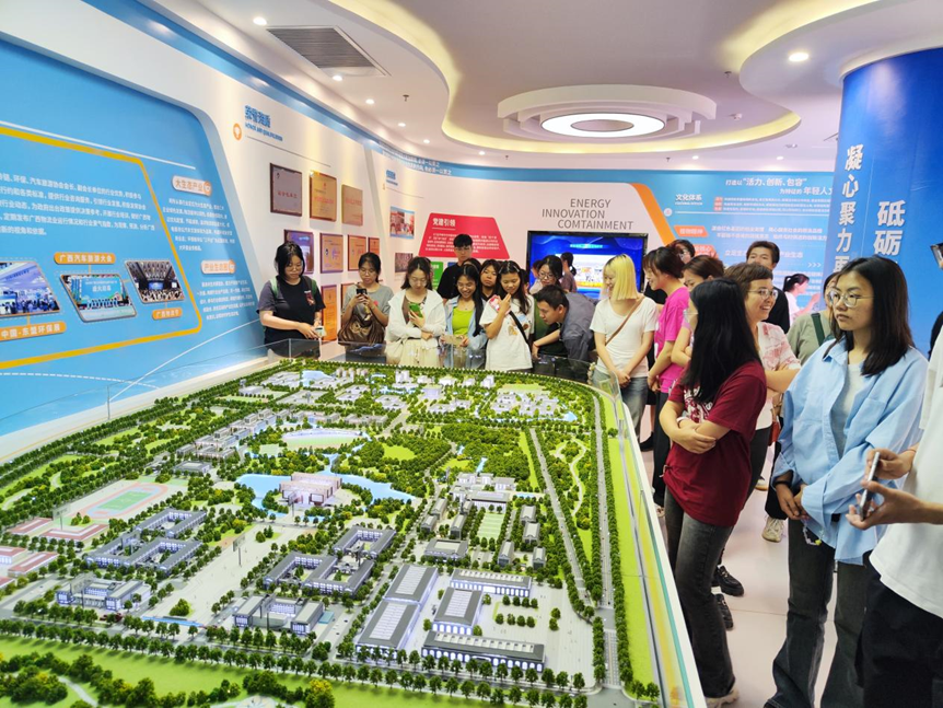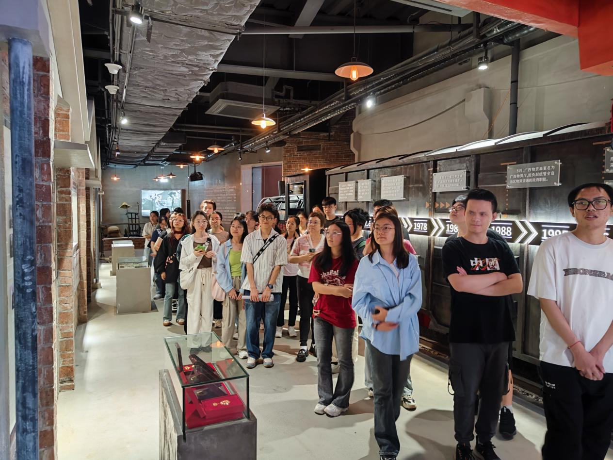在广西现代物流集团规划展示馆,通过讲解员的介绍和集团宣传片,同学们了解了集团的发展历程、组织架构和滨海湾金沙赌场,对其在物流、环保、机电、职业教育等多领域的实力与影响力有了直观认识。