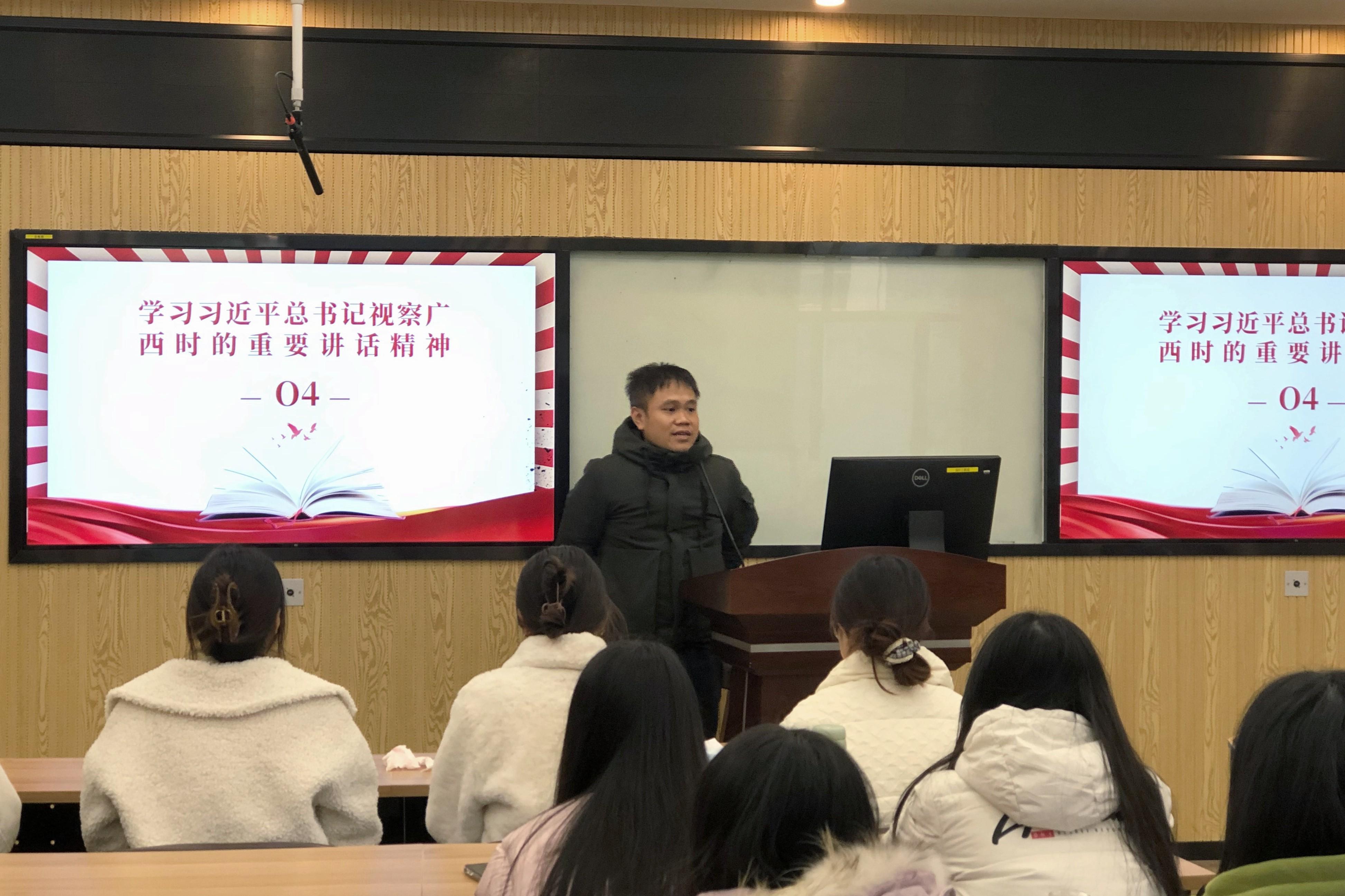 党委第一时间组织师生党员专题学习习近平总书记视察广西的重要讲话精神。