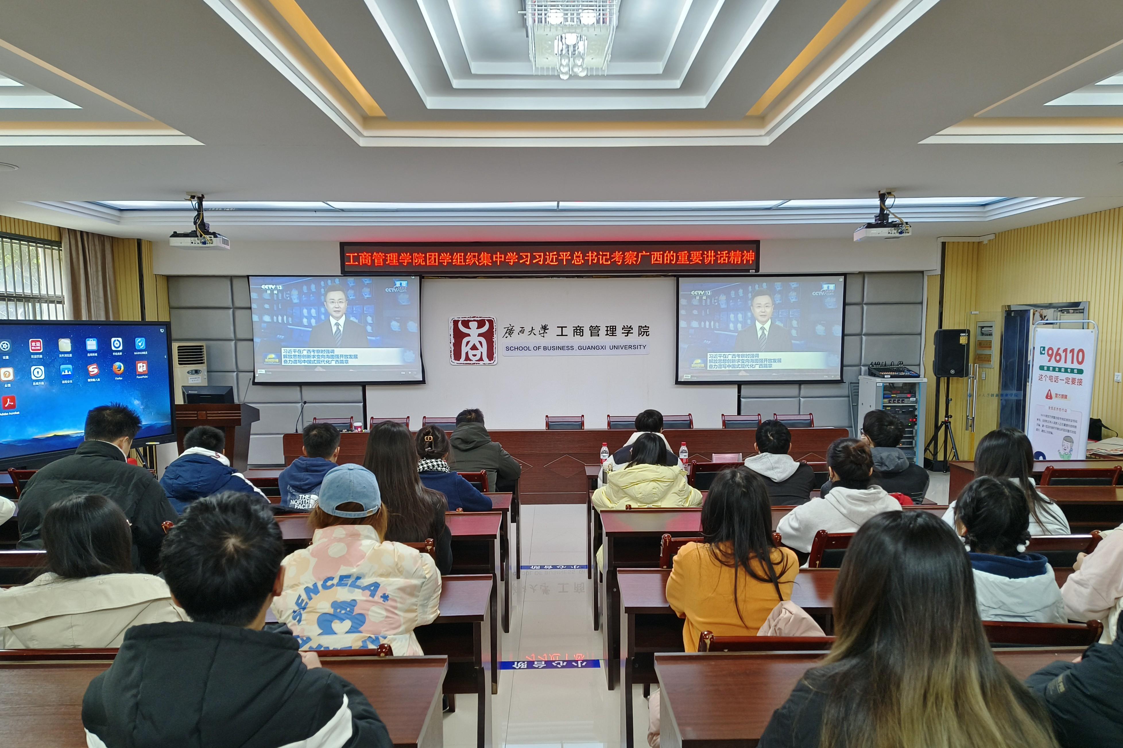 124报告厅一起观看了习近平总书记视察广西的新闻报道视频,集中学习习近平总书记视察广西的重要讲话精神。