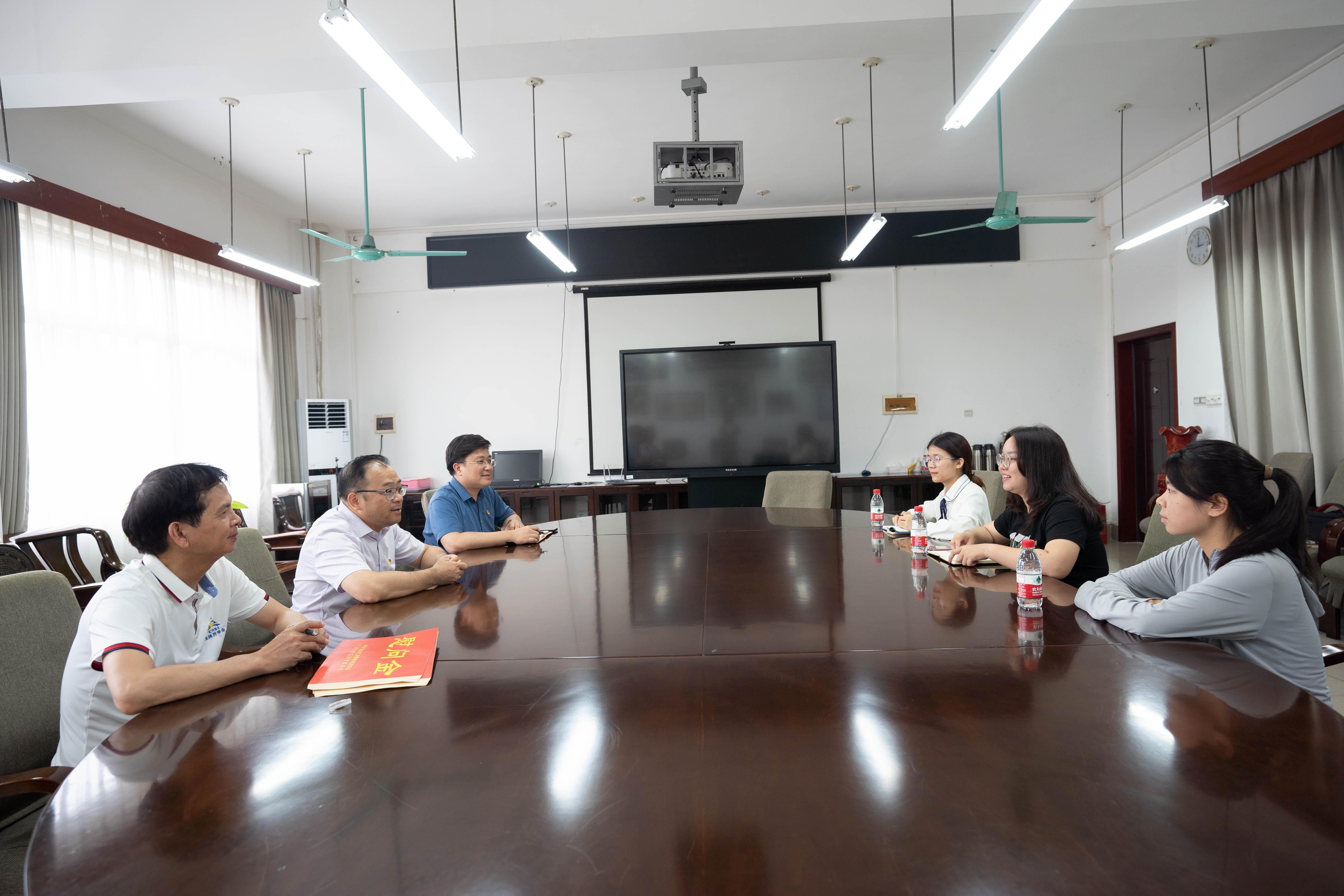 420会议室,院党委书记罗诚,院党委副书记、院长朱帮助,副院长廖东红与滨海湾金沙赌场