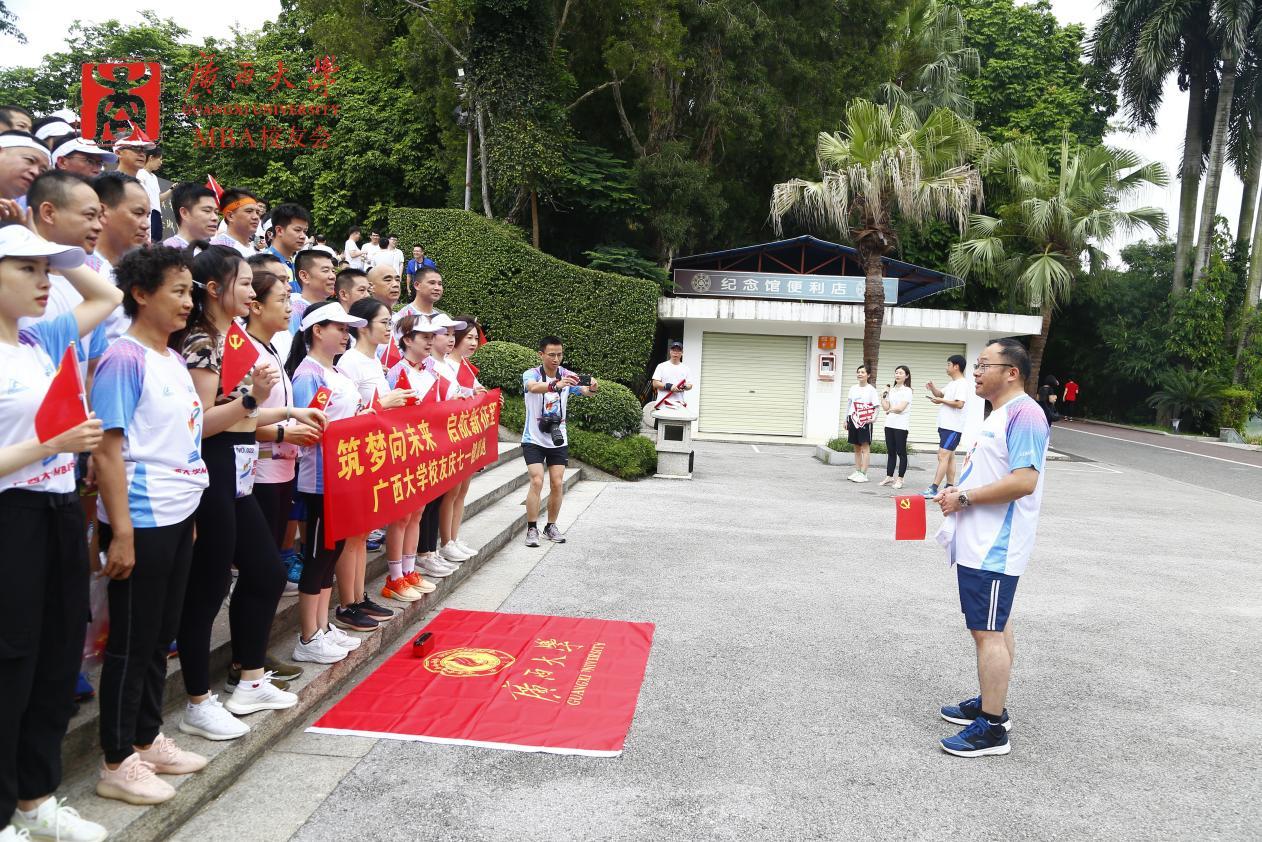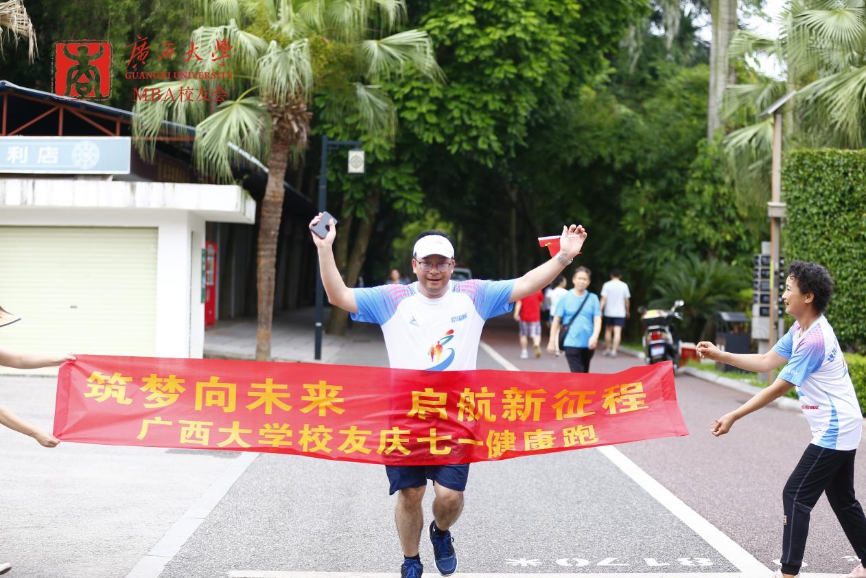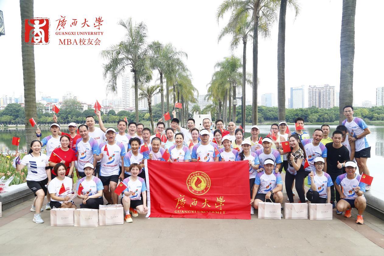 MBA、EMBA校友一起,在南宁市南湖公园参加了由广西大学区直校友会、广西大学南宁市校友会、广西大学EMBA同学会、广西大学MBA校友会、广西大学MBA联合会共同举办的主题为“筑梦向未来,启航新征程”的广西大学校友庆“七一”健康跑活动。近70名校友在全长8.1公里的环湖绿道上意气风发、奋勇向前,以这种特殊的方式庆祝中国共产党成立102周年。
