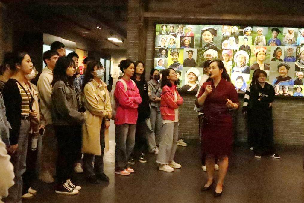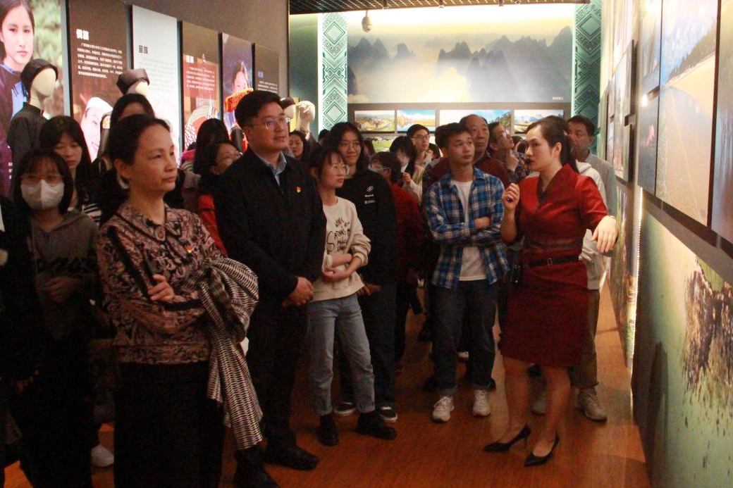 等7个党/团支部共计约80人赴广西民族博物馆,通过实地教学的方式加深学习广西民俗文化知识。在壮族文化展厅和五彩八卦文化陈列馆,师生们认真听取讲解员介绍壮族的分布和文字、建筑风格、祖先祭祀、农业、纺织业以及民族服饰等,感受壮锦、铜鼓、绣球等壮族文物的魅力。在民族村小舞台,支部组织同学分发壮族五色糯米饭和绣球半成品制作包,同学们分为8个小组一边品尝五色糯米饭,一边沉浸式体验绣球制作。