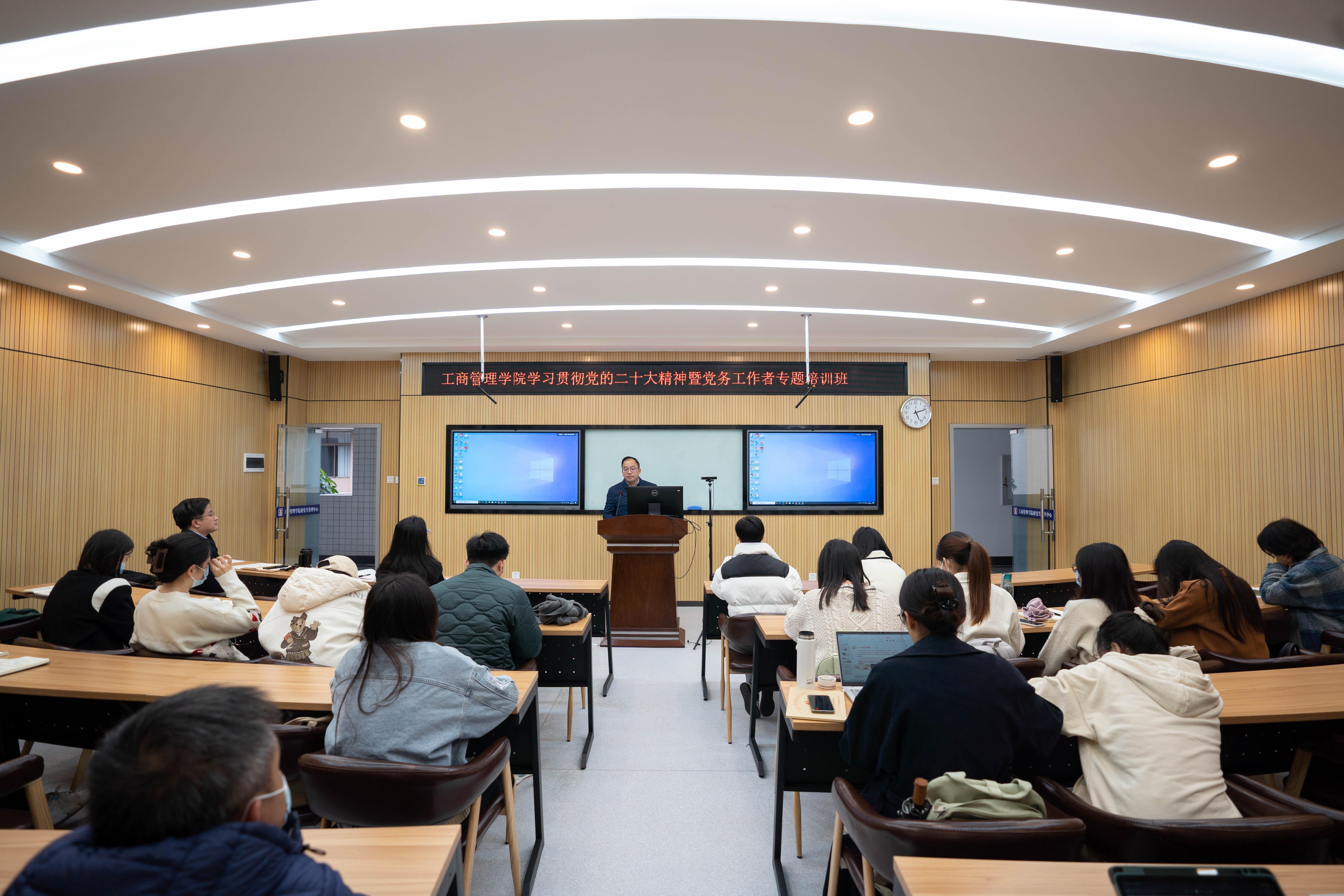 专职组织员黄照温就“全面实现基层党组织‘五基三化’”进行了专题教学。作为学校评选的星级党支部代表,教工行政党支部、研究生第一党支部、本科生第一党支部、教工信经党支部、本科生第四党支部、研究生第二党支部相关负责人围绕各支部品牌化建设、工作亮点及工作模式、开展的特色活动、下一步工作计划等方面进行了经验分享。