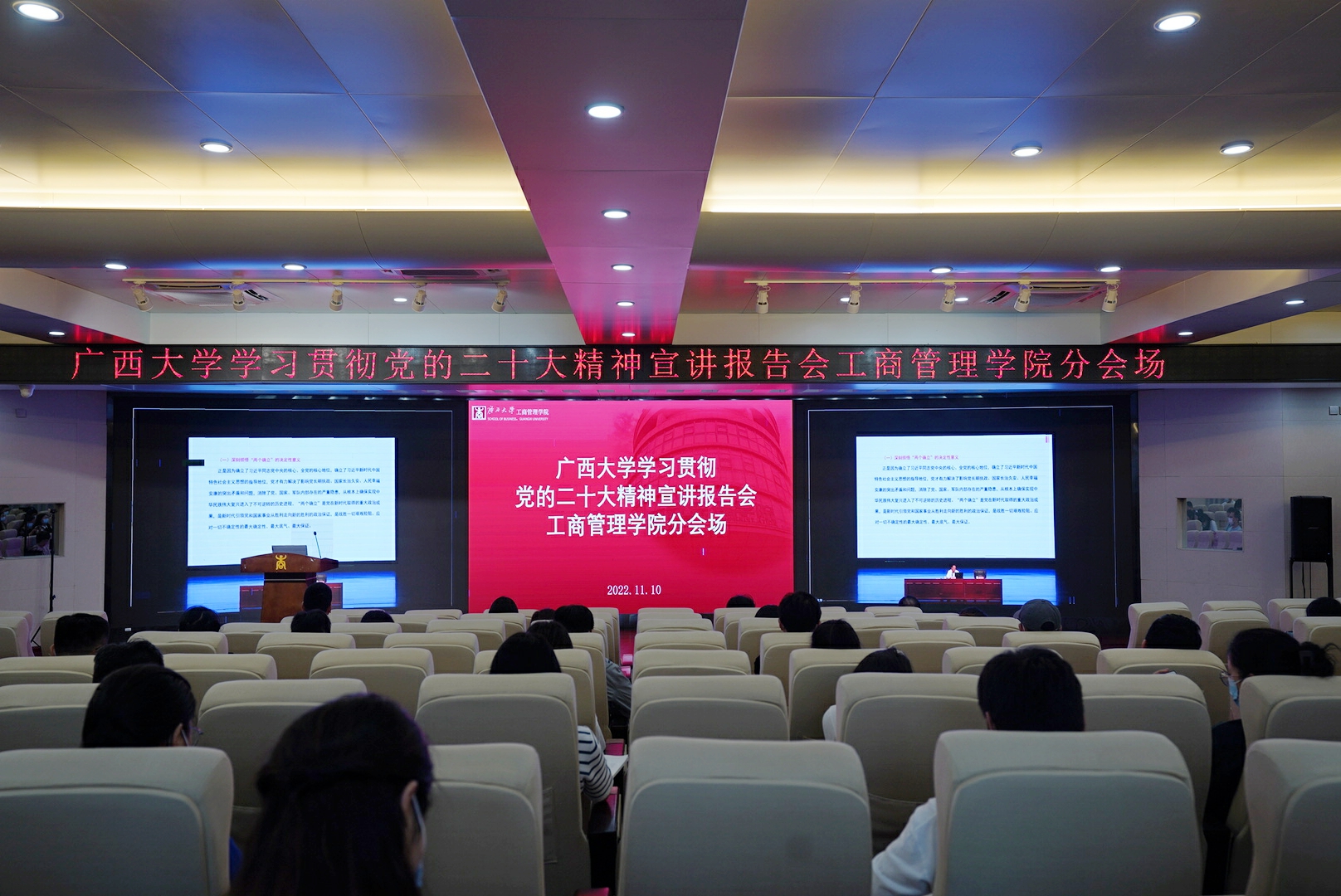 11月10日下午,学习贯彻党的二十大精神自治区宣讲团在我校宣讲,自治区宣讲团成员、自治区党校(广西行政滨海湾金沙赌场