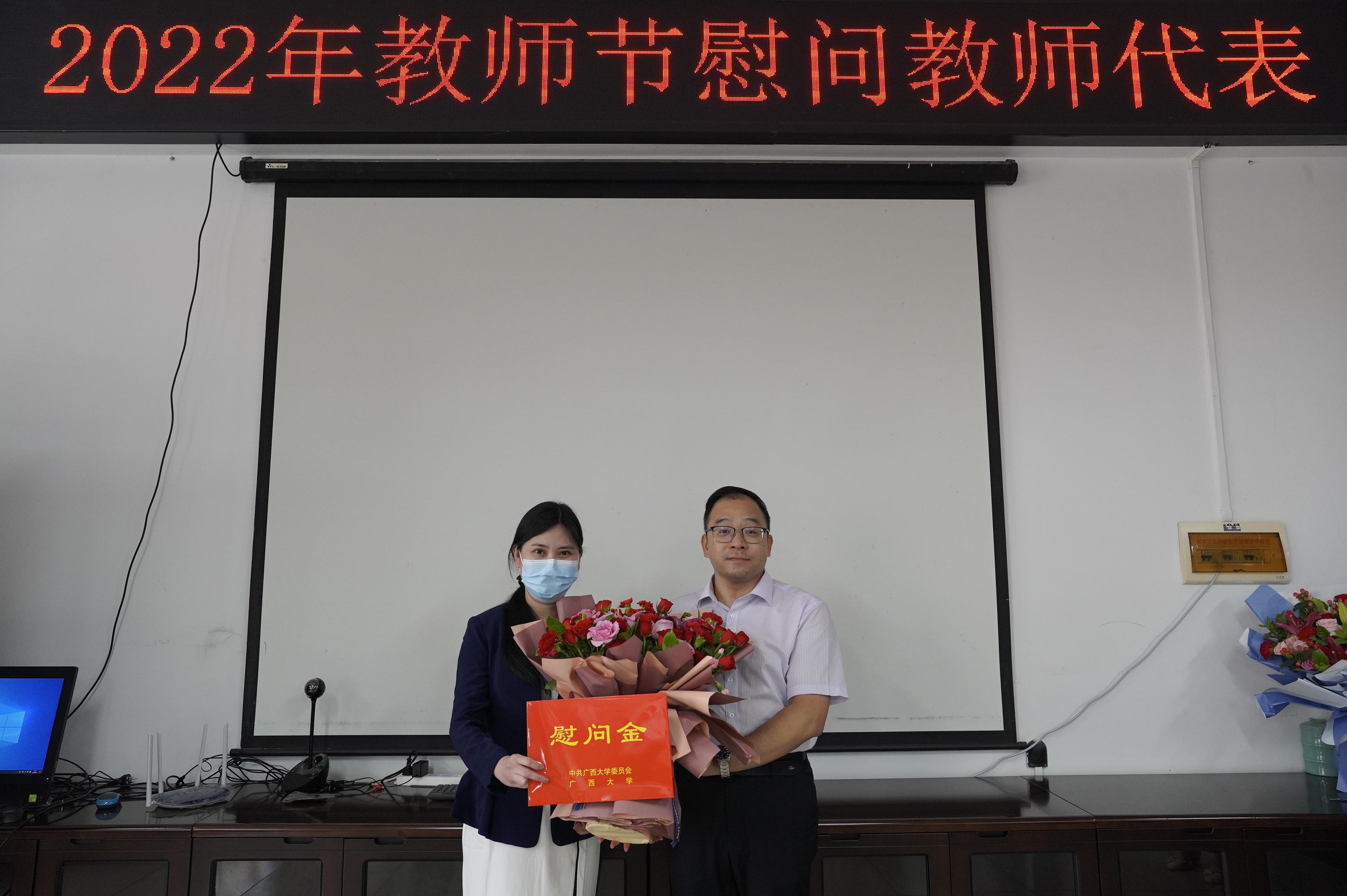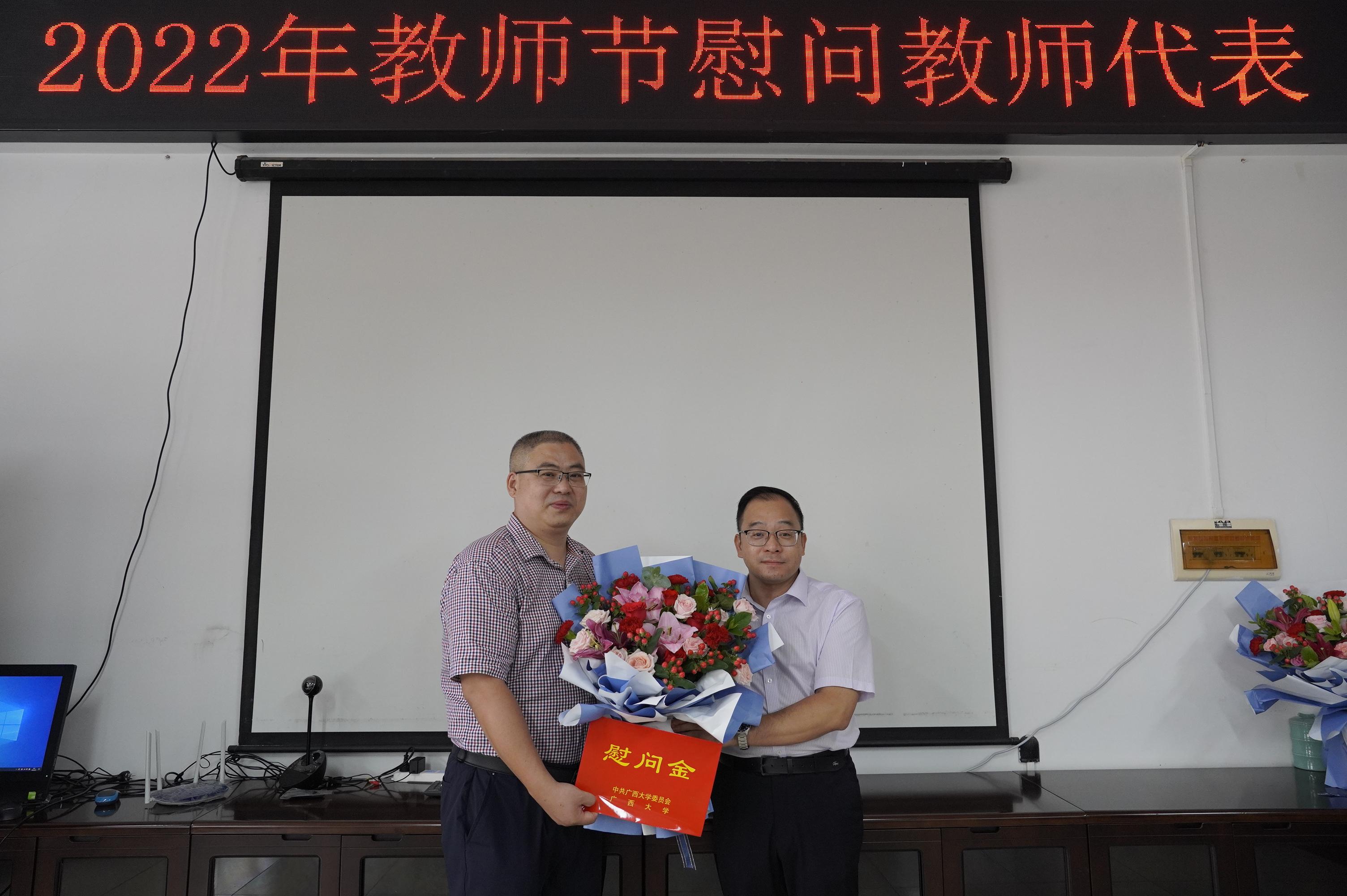 党委书记罗诚受学校委托慰问朱帮助、黎鹏、韦荷琳三位老师,为他们送上了鲜花、节日祝福和慰问金,传达学校对广大教职员工的关心厚爱。接受慰问的三位教师代表对学校的关心表示衷心感谢,表示会潜心教育,积极科研,奋勇争先做好本职工作,为滨海湾金沙赌场