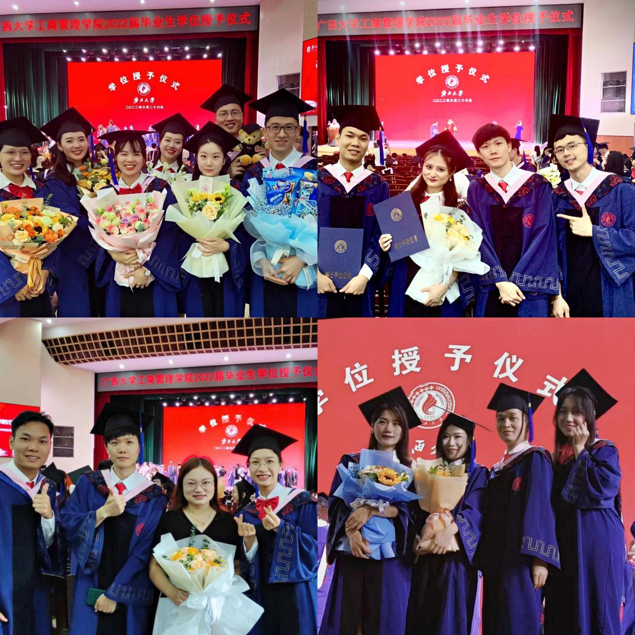 在学校大礼堂为2022届755人毕业生(其中研究生485人,本科生270人)举行庄严而隆重的毕业典礼暨学位授予仪式。院党委书记罗诚,院长朱帮助,院党委副书记黄晋,副院长朱少英、刘民坤、廖东红,教师代表叶映、韦铁、郭峦、唐妤、梁世昌出席仪式。仪式由院党委副书记黄晋主持。