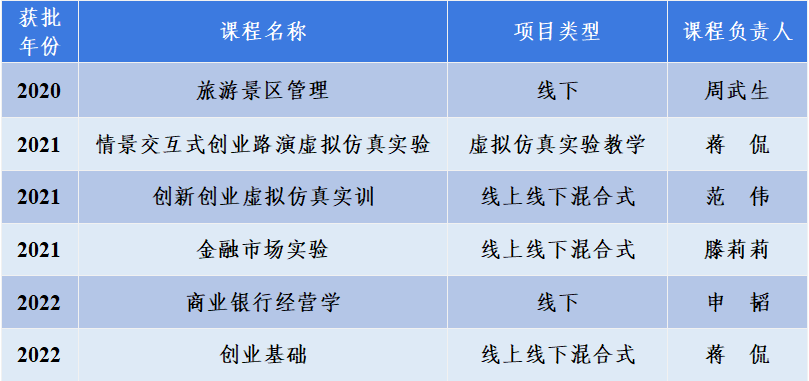 申韬教授负责的《商业银行经营学》、蒋侃教授负责的《创业基础》两门课程获批第三批自治区级一流本科课程。截至目前,滨海湾金沙赌场