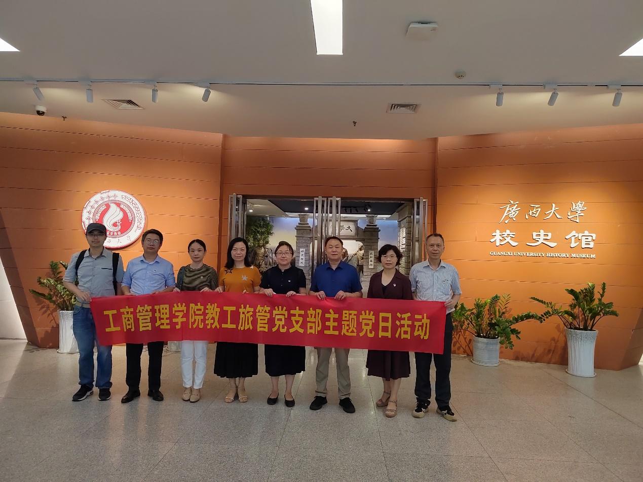 5月17日、5月31日,教工行政党支部、教工旅管党支部先后到自治区爱国主义教育基地--广西大学校史馆进行“以史为鉴 以史增信”主题党日活动。活动结合广西大学创始人兼第一任校长马君武先生提倡的“锄头主义”、“教师拼命教、学生拼命学、职工拼命干”的“三拼”精神和 “保卫中华,发达广西”的办学宗旨,让所有青年行政人员深刻领会该时期青年为保家卫国、建设祖国贡献的青春力量。