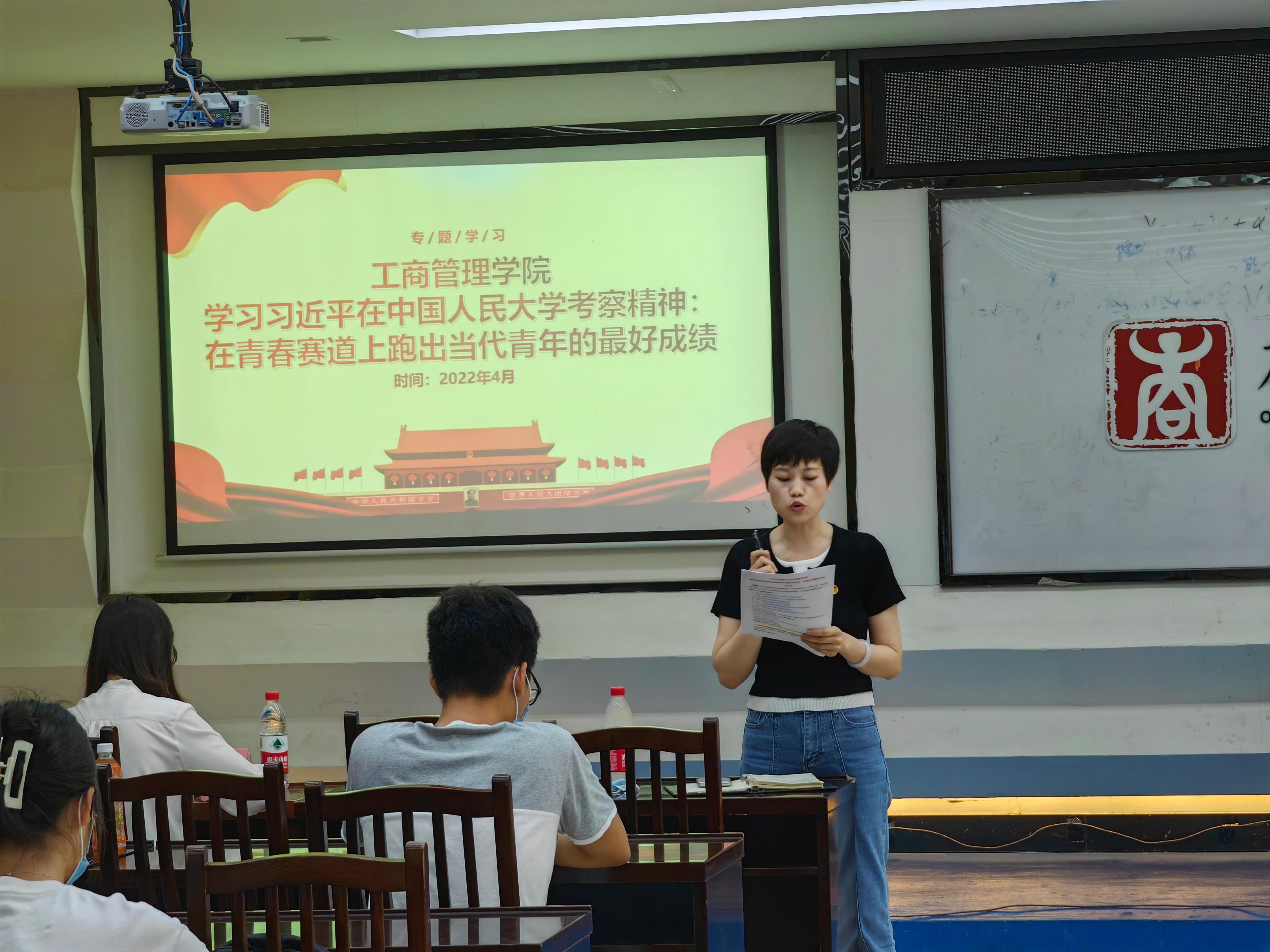 本科生第二党支部林圆圆:学习了习近平总书记4·25在中国人民大学考察时的重要讲话精神,让我备受鼓舞。青年学子始终沐浴成长在党的光辉之下,听党话跟党走早已融入自身发展的血脉之中。