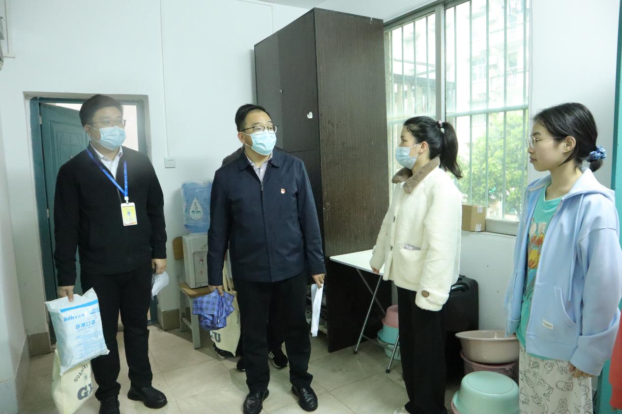 黄晋副书记在走访研究生宿舍时强调,希望同学们多多支持和理解学校的疫情防控政策,注意个人防护,勤洗手,前往食堂就餐佩戴口罩,积极配合核酸抽检工作,共同为维护学校安全稳定而努力。