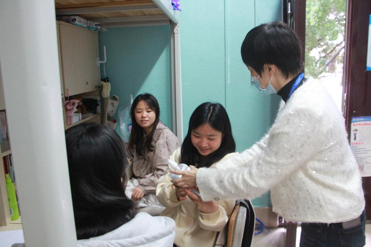 罗诚书记(右四)、黄晋副书记(左三)到宿舍看望学生