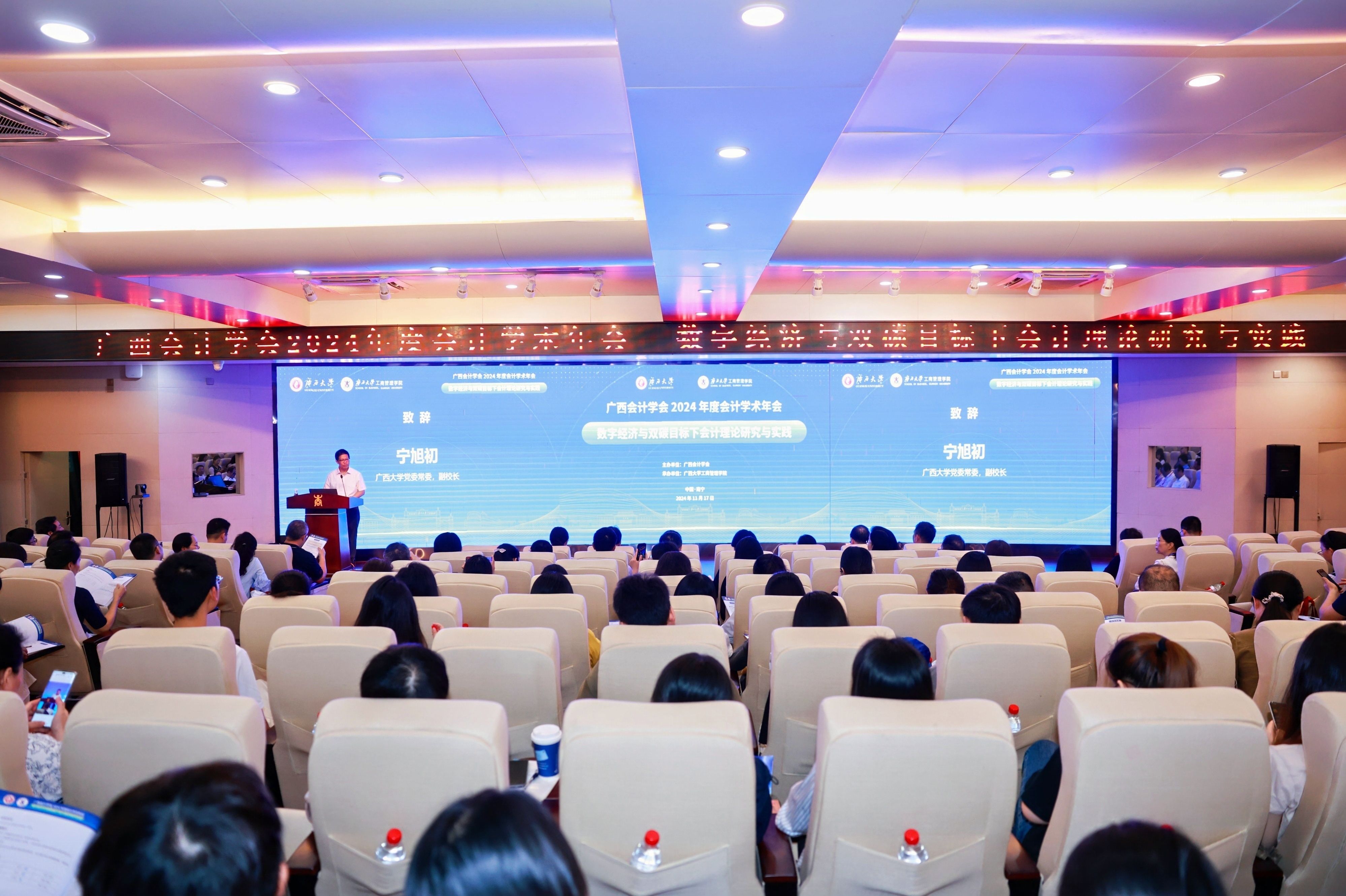 承办的广西会计学会2024年度会计学术年会在我校举行。广西大学党委常委、副校长宁旭初,广西会计学会会长兰丽萍,广西壮族自治区财政厅副厅长陈海涛出席开幕式并致辞。广西大学党委常委、副校长夏国恩会见了与会嘉宾。广西会计学会秘书长、财政厅会计管理处处长黄高留主持开幕式。