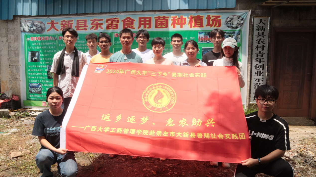 积极响应国家乡村振兴战略,组织了一支暑期社会实践团,深入崇左市大新县万礼村东雷食用菌种植场,开展以“返乡逐梦,惠农助兴”为主题的社会实践活动,旨在通过实际行动助力当地食用菌产业高质量发展,探索数字技术在农业农村现代化中的创新应用。