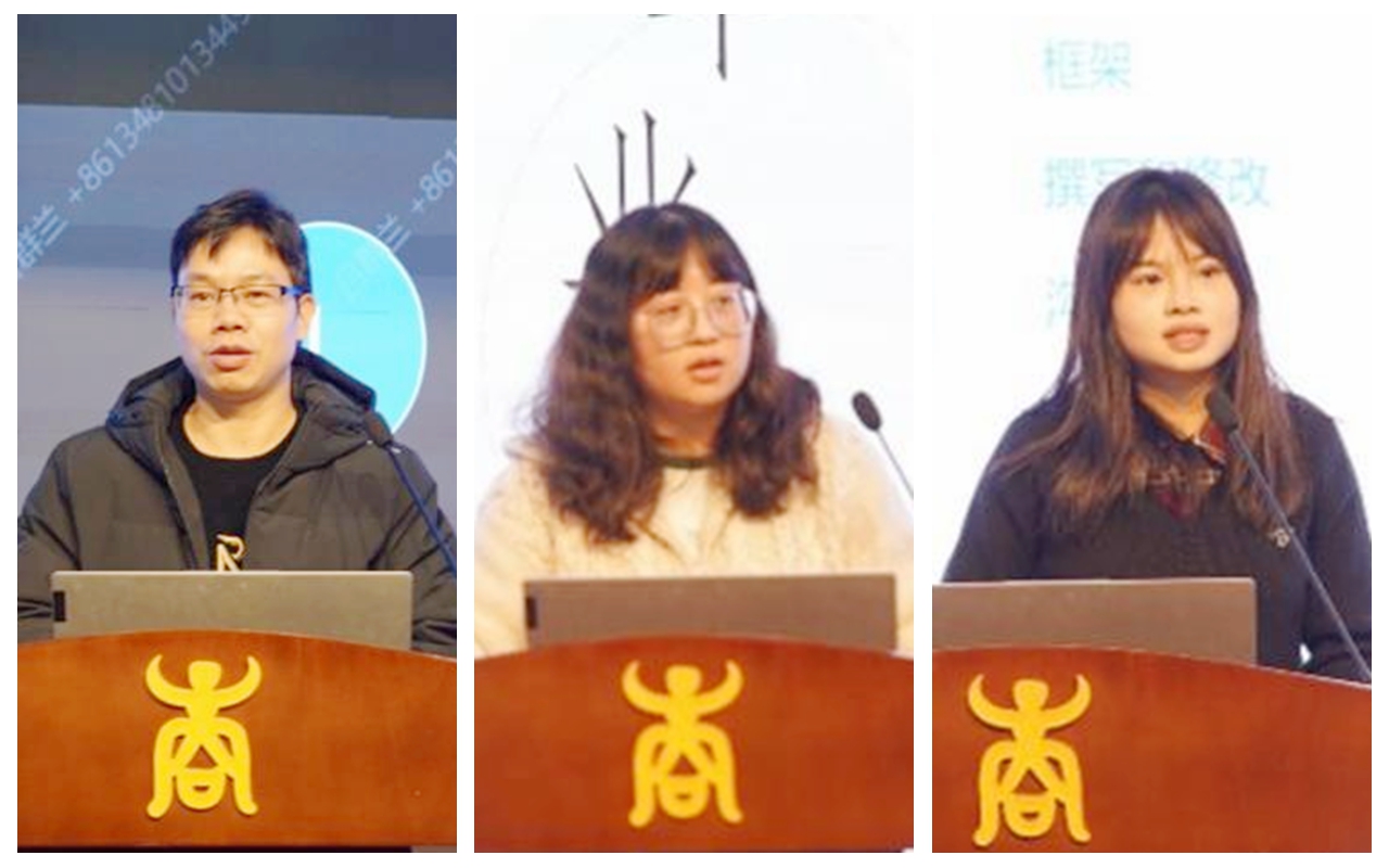 梁世昌老师(左)、李曼(中)、吴燕妃(右)分享论文撰写技巧