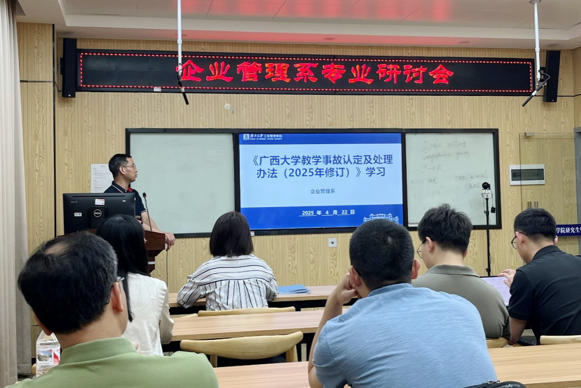 针对教学管理议题,老师们逐条研读新版《广西大学教学事故认定及处理办法(试行)》和《课堂教学正面清单与负面清单》(简称“课堂教学十六条”)。大家围绕教学事故分类与级别表中的事故类型及认定依据展开讨论,分享避免教学事故的经验。随后,结合“课堂教学十六条”,老师们从课堂准备、教仪教态、课堂“两性一度”等方面,交流了在严守师德师风前提下的教学体会。