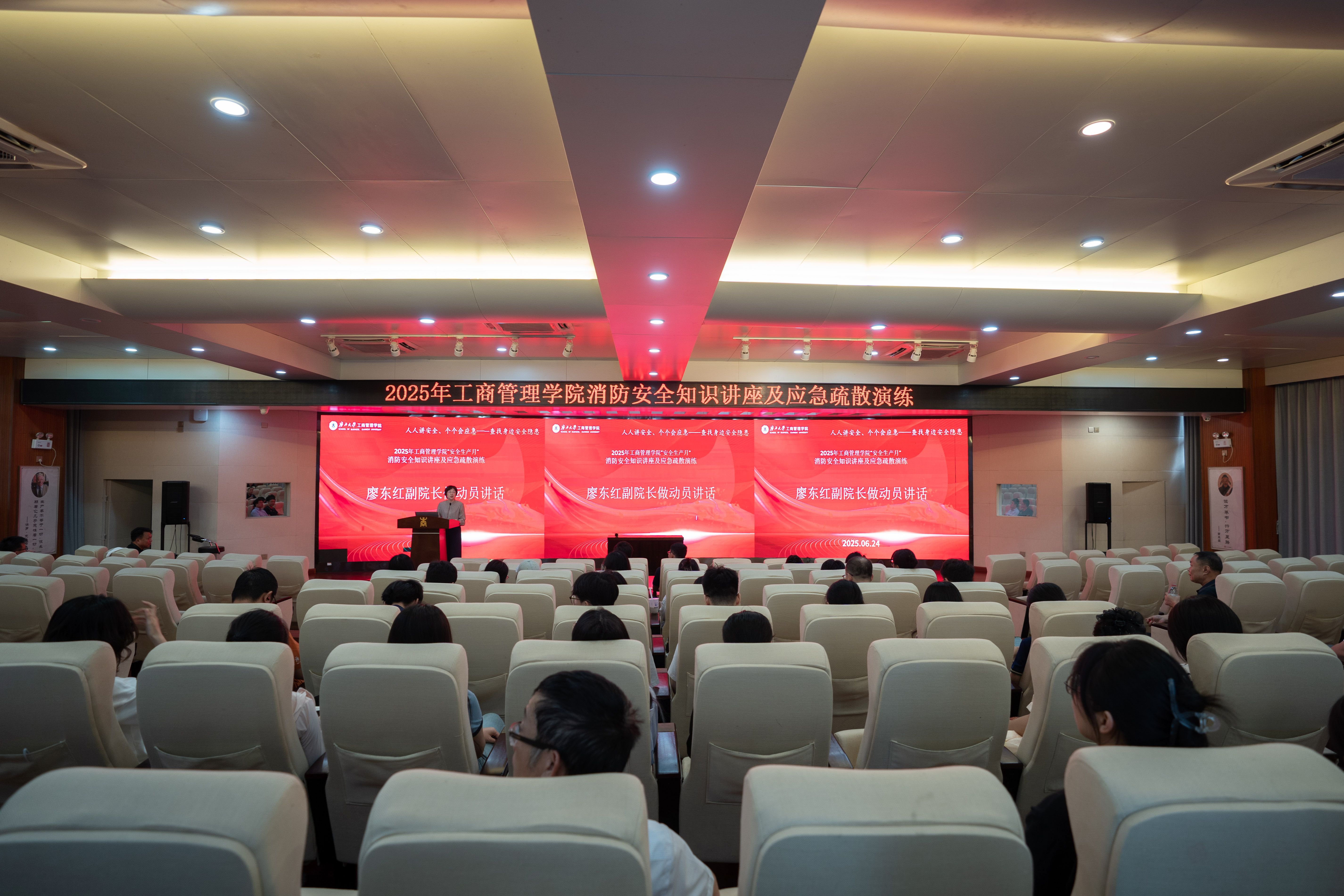 廖东红强调,今年6月是第24个全国“安全生产月”,主题是“人人讲安全、个个会应急”。开展消防安全知识培训和疏散演练的目的是进一步增强全院师生的消防安全意识,提升应急避险和自救互救能力,筑牢校园安全防线,共同打造平安校园。