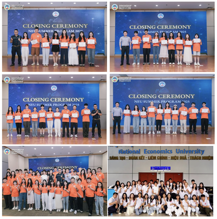 7月11日,结营仪式在越南国民经济大学举行,全体学员圆满完成各项学习与实践任务。越南国民经济大学领导为学员们颁发结营证书。学员们纷纷表示,此次夏令营极大拓展了国际视野,系统了解了越南及东南亚营商环境与市场潜力,显著提升了跨文化沟通、团队协作和解决实际问题的能力。此外,实地考察还激发了他们的专业兴趣,部分学员与企业代表建立了初步联系,为未来职业发展和潜在合作创造可能。学员们的积极风貌和专业素养获越方院校高度评价。