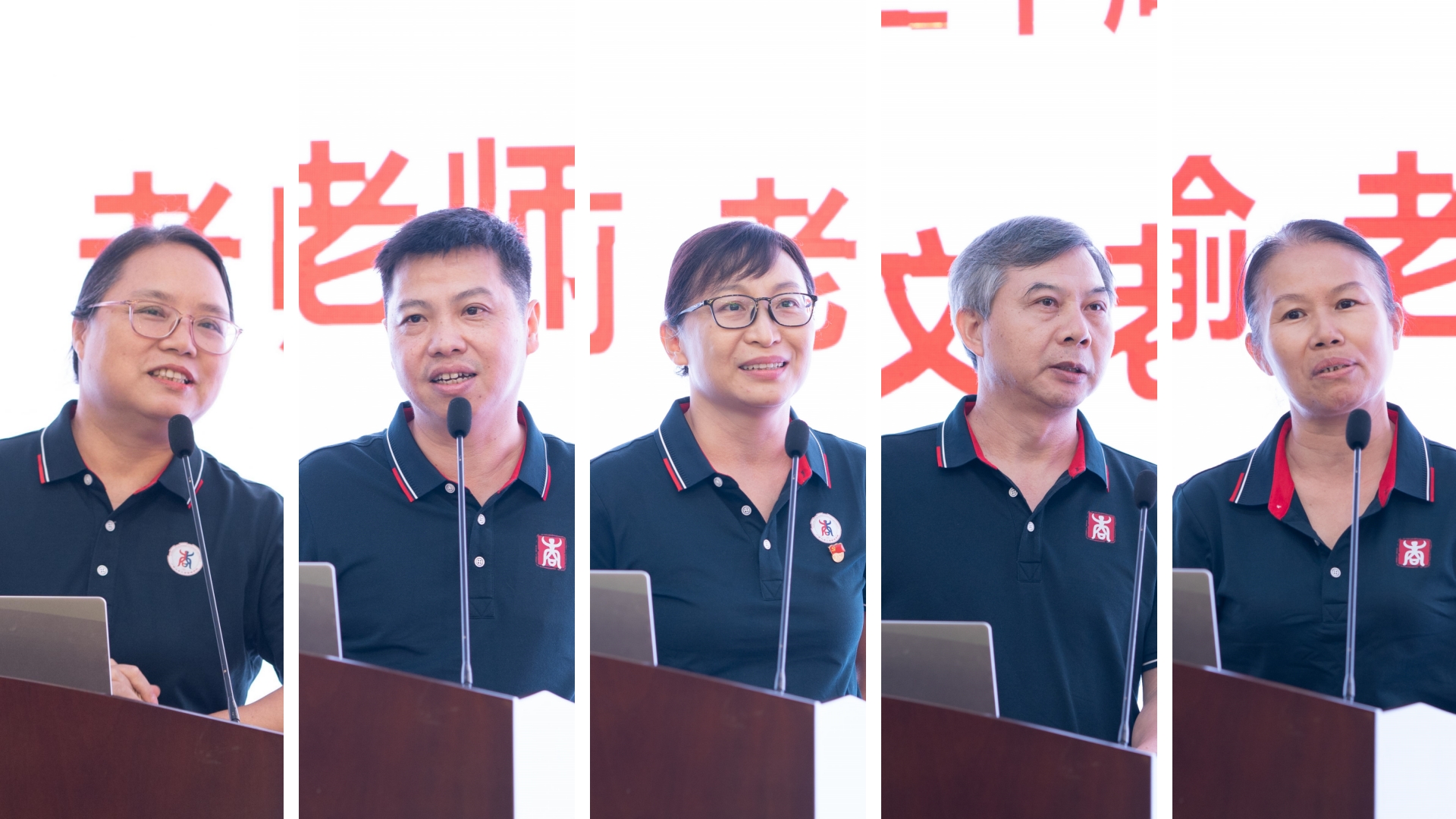 随后,朱少英、韦铁、滕莉莉、张星文、潘思谕老师先后上台发表从教三十年和荣退感言。从满头乌发到两鬓染雪,他们细数教学历程中的难忘瞬间,从初登讲台的青涩懵懂到告别杏坛的从容淡然,他们凝练育人智慧,抒发教育情怀,提炼人生感悟,彰显了对三尺讲台的无限眷恋,传递了对滨海湾金沙赌场