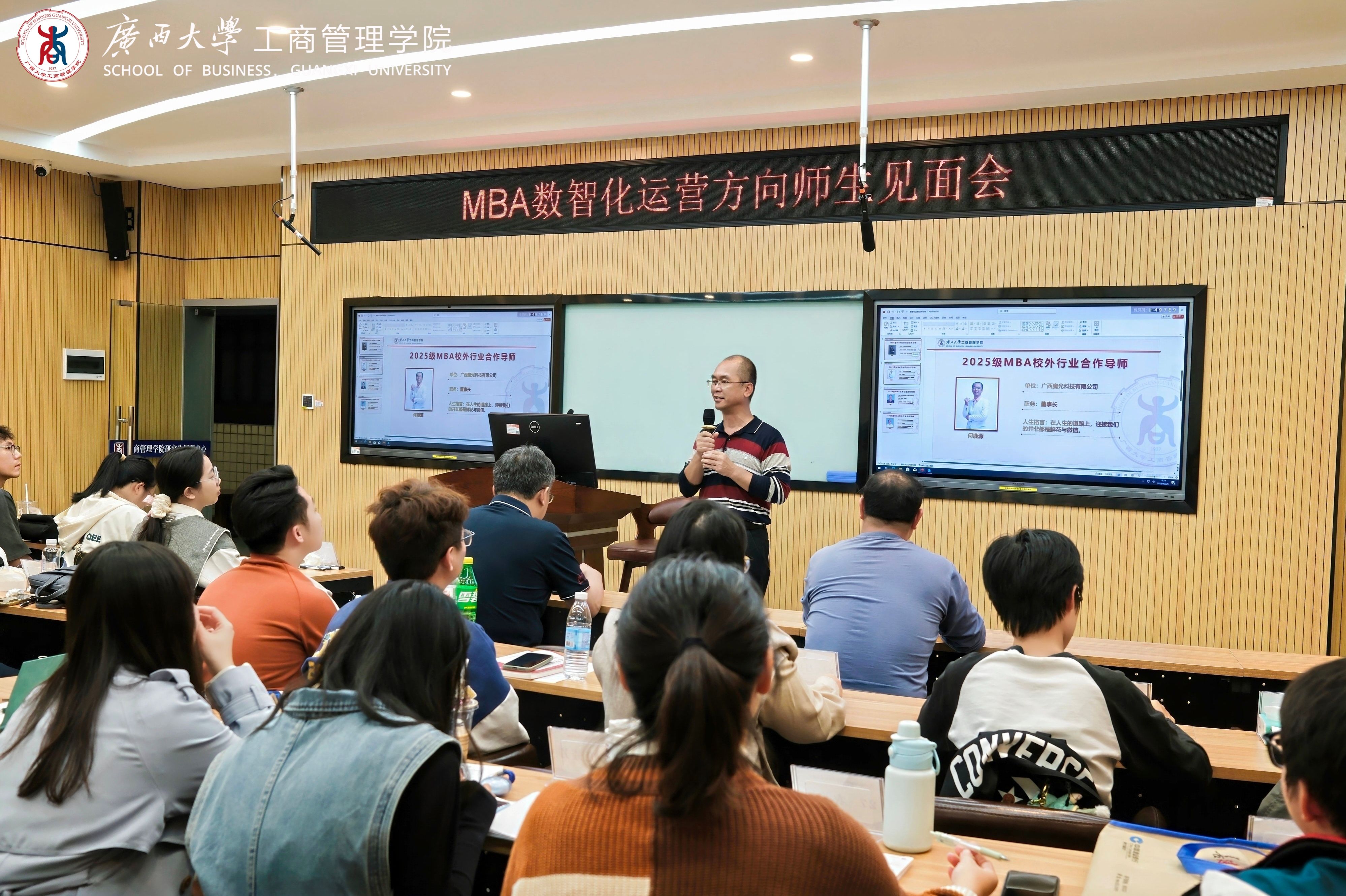 各教室同步举行,覆盖MBA各方向(科技产业运营、中国-东盟国际商务管理、数智化运营管理、科技金融、企业经营与管理五大模块)、EMBA、会计硕士和旅游管理硕士等项目。各位导师从专业学习、工作实践与行业发展等多个角度,与学生们亲切深入交流,加深了同学们对各行各业的认知,助力同学们将理论与实践相结合,为今后的学习研究奠定基础。