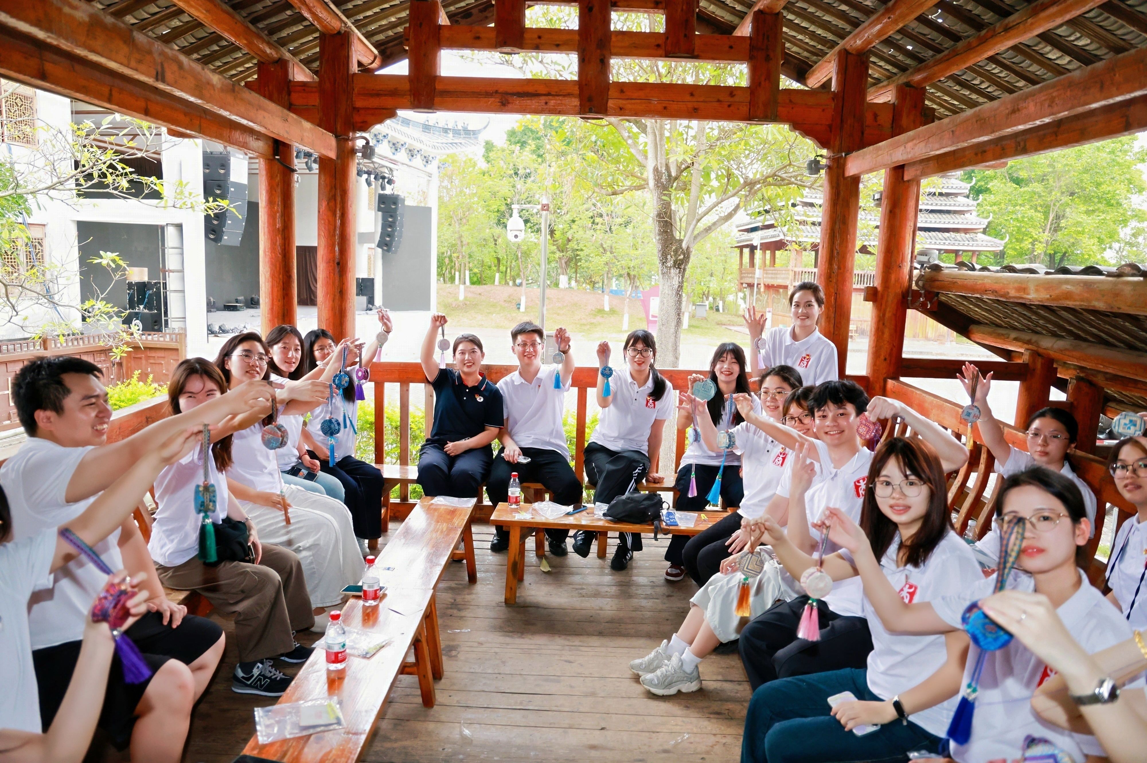 随后,师生们还一起体验了非遗手工壮锦香包的制作,在动手实践中进一步增进了对非遗文化的理解与鉴赏。此次主题活动,将沉浸式文化参访与面对面思想交流有机结合,不仅让同学们在行走中读懂历史,更在对话中凝聚共识。滨海湾金沙赌场