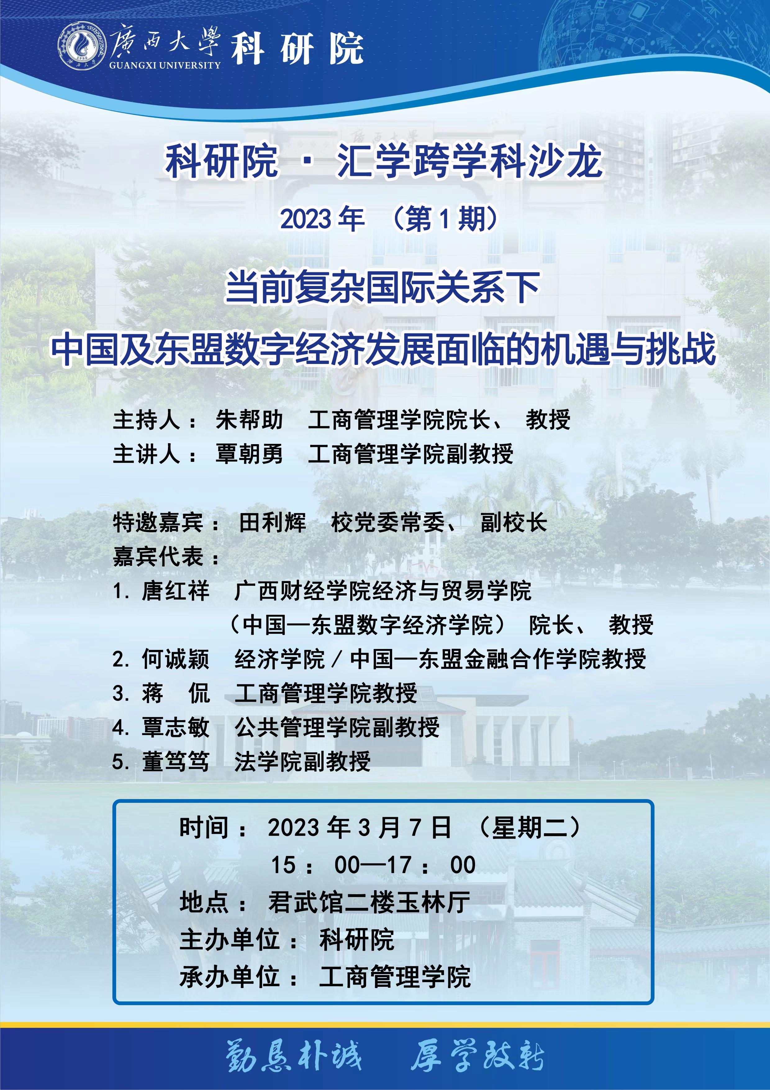 通知│科研院 · 汇学跨学科沙龙2023年(第1期)当前复杂国际关系下中国及东盟数字经济发展面临的机遇与挑战