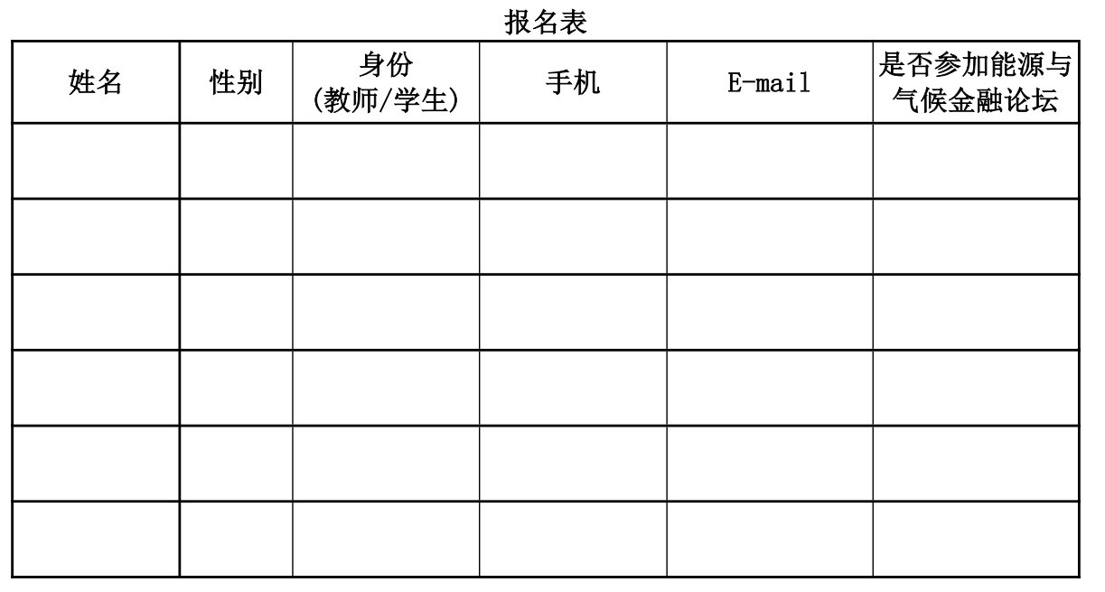 参加“中国能源经济与管理研究前沿研讨会”的人员须报名并缴纳注册费;除参加“中国能源经济与管理研究前沿研讨会”人员外,参加“能源与气候金融论坛”人员均为邀请专家,不接受单独报名。