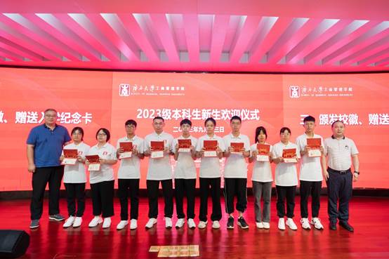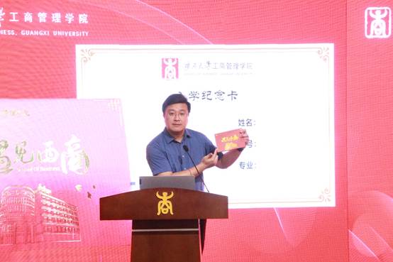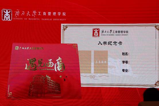 特别为每一位新生都订制了精美的“遇见西商”入学纪念卡。每张纪念卡上记录着新生的姓名、专业、学号,以及一张入学时的相片,为新生留下深刻美好的入学回忆。在全体新生的见证下,院领导为新生代表赠送校徽、入学纪念卡,意味着他们已成为光荣的“西商人”,是他们永不褪色的标签,传递了老师们对新生的殷切希望、憧憬与希冀。