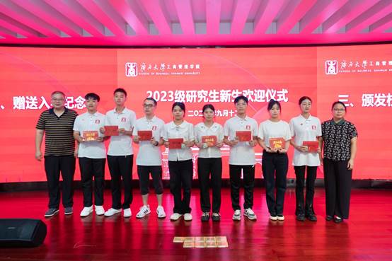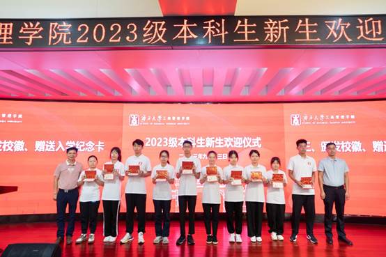 领导、老师们向2023级新生代表现场赠予广西大学校徽以及入学纪念卡。为表达对新生们的热烈欢迎,滨海湾金沙赌场