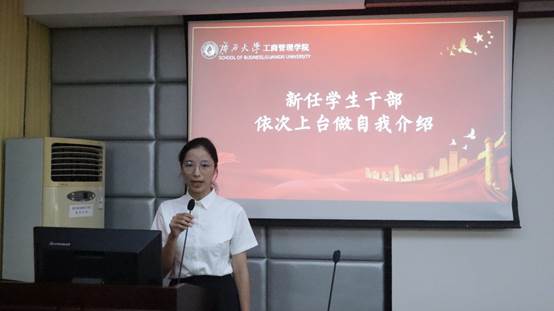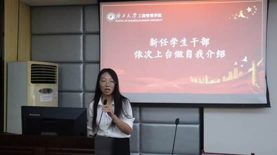 (学生团委副书记杨吉兰进行自我介绍)