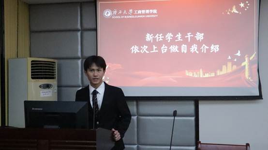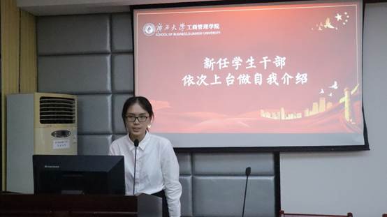 名单宣读完毕,新任学生干部上台依次进行自我介绍。