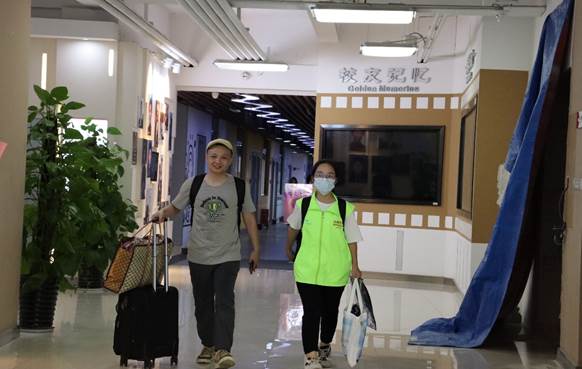 相应教室报到处进行注册,然后帮助新生们将一件又一件的行李物品搬运至宿舍。拉箱子、提水桶、拎包,志愿者凭借着坚定的责任感,认真的服务精神,接待好每一位研究生新生。