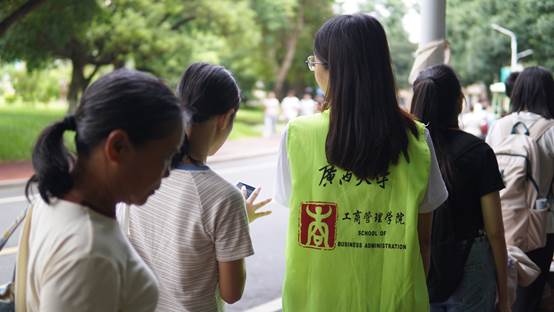 精心制作迎新方案,招募一百多名学生志愿者组成队伍,组织学生党支部建立党员志愿服务岗,发挥南宁“能帮就帮”的城市精神,闪亮的“绿马甲”队伍为新生提供了最贴心的迎新服务工作。