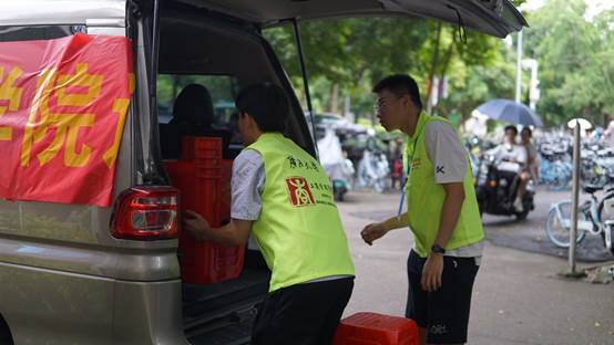 门前守候,来回搬运行李,只为向商管新生们提供最贴心的帮助。