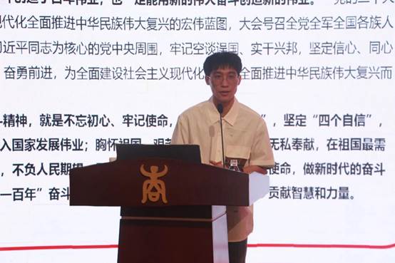 “奋斗连”的名字起源,引入培养学生奋斗精神的教育目标。随后,以中国共产党员精神谱系作为基本脉络,结合党史,从中整理出优秀共产党人先进事迹蕴含的奋斗精神。并总结“自力更生、艰苦创业;敢于胜利,勇于斗争;坚持真理,百折不挠;胸怀大局,无私奉献”四个奋斗的内涵。希望学员们能够把握两个大局,在中华民族伟大复兴的道路上,以奋斗精神督促自己做一名合格党员,为国家做贡献。