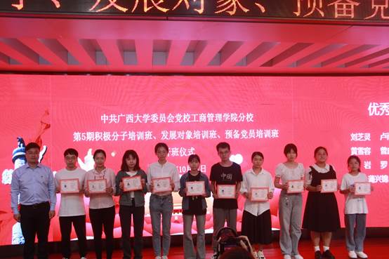 党委副书记黄晋,院党委专职组织员黄照温、院团委书记马丽娟、院团委副书记岑汉成、学工组辅导员王乐、以及来自入党积极分子党校班、发展对象党校班和预备党员党校班的学员160多名代表共同参加开班仪式。