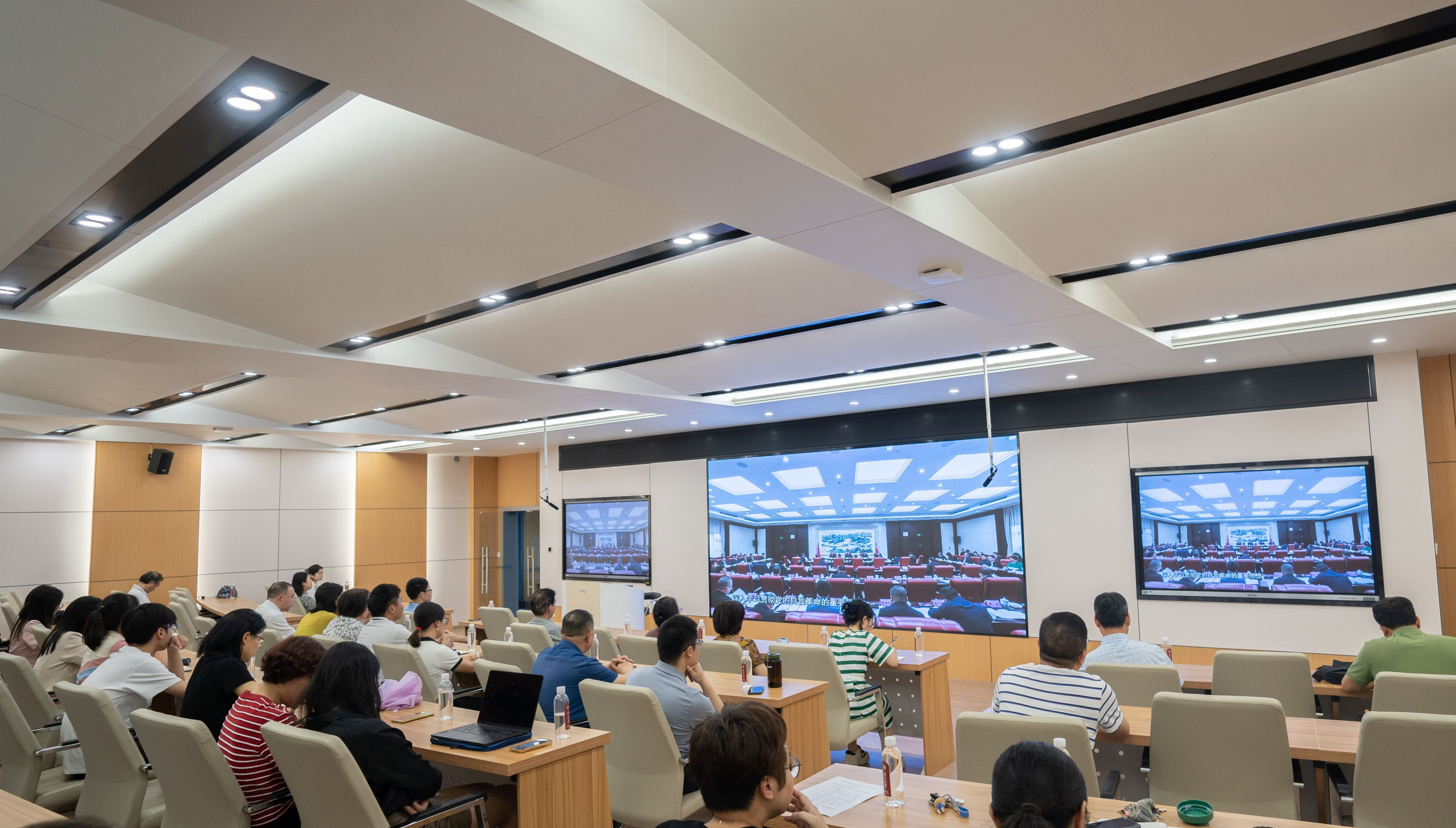 党委在122教室组织全体教工党员集中观看学习了由自治区纪委机关制作的党纪学习教育警示教育系列专题片。