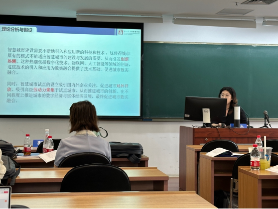 在分会场汇报中,广西大学学生杨镕博进行了题为“智慧城市能否推动城市数实融合?——基于“准自然实验”的证据”的报告。随着技术进步与经济发展,继农业经济与工业经济之后,人类迎来了新的经济形态——数字经济。在数据成为关键生产要素之后,数字经济与实体经济深度融合被广泛关注,党的二十大报告明确提出“加快发展数字经济,促进数字经济和实体经济深度融合,打造具有国际竞争力的数字产业集群”。另一方面,随着数字经济快速发展,作为一种新型城市发展模式,智慧城市迅速在世界各国掀起建设浪潮。杨镕博的研究指出智慧城市建设对城市数实融合程度具有显著的促进作用,其作用机制是通过创新效应、人才集聚效应与对外开放效应而实现;同时智慧城市对城市数实融合的促进作用存在城市区域异质性与城市规模异质性。这篇文章拓宽了现有研究,对于数字经济与实体经济深度融合和智慧城市建设具有一定参考价值,也对中国式现代化和高质量发展目标的实现具有借鉴意义。