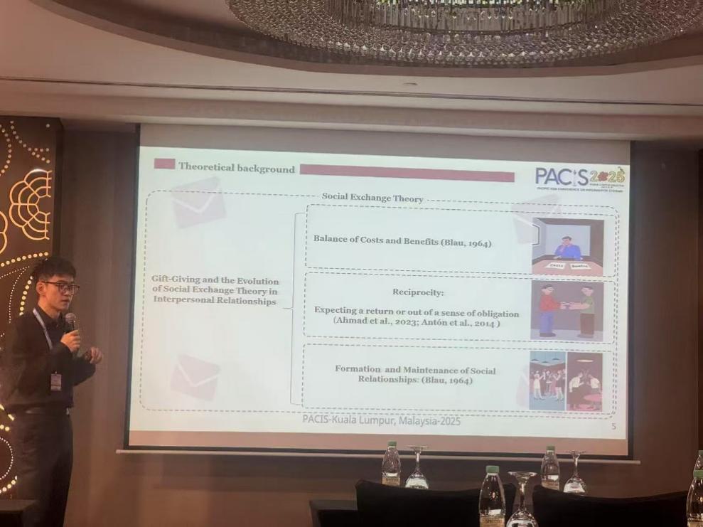 2023级硕士研究生王子升赴马来西亚亚吉隆坡参加第29届太平洋亚洲信息系统会议(PACIS2025)(Pacific Asia Conference on Information Systems2025)并做报告。该会议由AIS信息系统协会(Association for Information Systems)主办,AIS亚太分会承办,马来西亚理工大学(UTM)协办。大会围绕“Diversity & Inclusion in Information Systems”主题,探讨在数字化转型背景下如何通过包容性与多样性促进信息系统领域的创新与协作,以及个人、组织乃至国家如何有效推动系统治理与管理以及人工智能中各种数据分析模型在新时代信息背景中的应用。