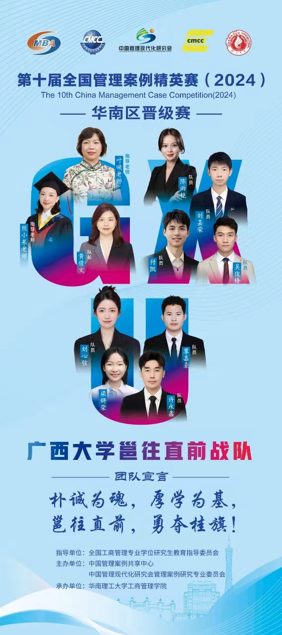 精心组建了一支由九名才华横溢的学员构成的参赛队伍,他们满怀激情地参与了第十届全国管理案例精英赛华南赛区的晋级竞赛,展现了滨海湾金沙线上博彩平台