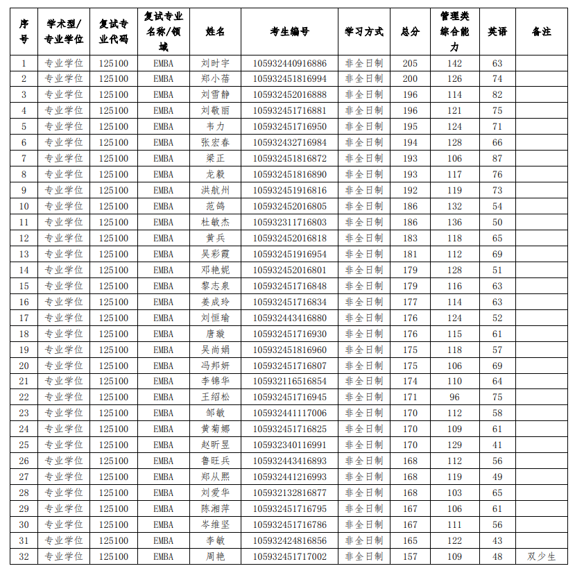 EMBA一志愿考生进入复试的名单公布如附件1所示。