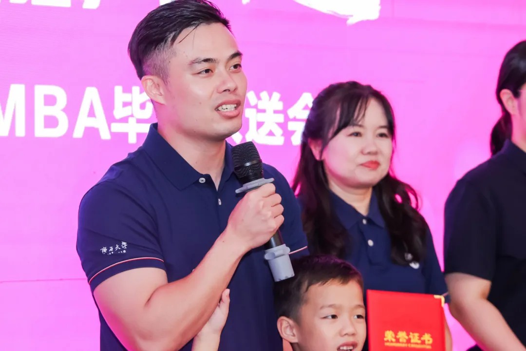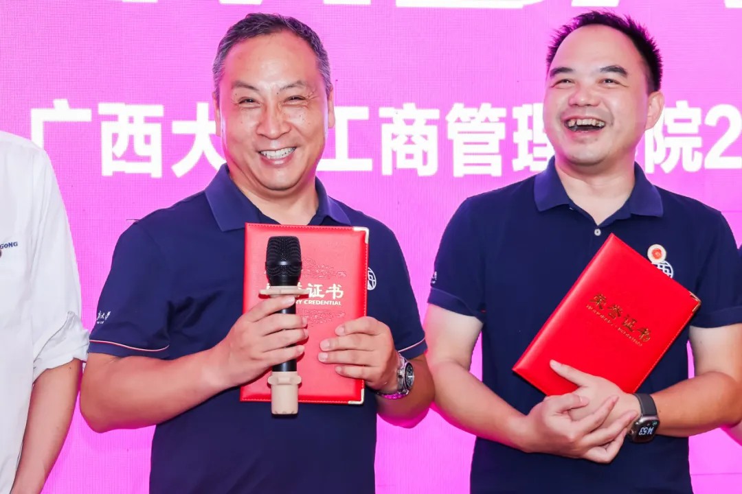 党委行政和全体师生员工向EMBA毕业生们致以最热烈的祝贺,他分享了三点期望与毕业生们共勉:一是勇立潮头,做终身学习的领航者。勇于尝试新技术、新模式,在跨界融合中突破边界。二是胸怀天下,做社会责任的担当者。要发扬广西大学“三拼精神”和企业家精神,把个人的理想追求融入国家和民族的事业中。三是要坚守初心,做人生价值的追求者。以乐观之心笑对人生起伏,以感恩之情珍惜身边温暖。并希望毕业生们带着“勤恳朴诚、厚学致新”的校训精神,以“敢为天下先”的勇气逐梦前行。