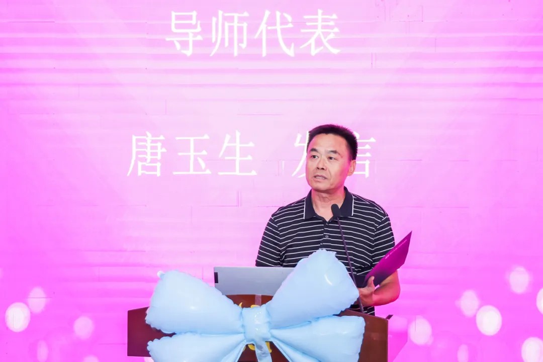 唐玉生教授作为导师代表发言,他表示两年时光,同学们收获了知识、人脉和快乐,如今再次扬帆起航,虽然充满许多不确定性,但是希望大家一起努力,共同创造一个美好的未来。他祝福同学们梦想成真、事业有成、阖家幸福,从成功走向卓越。