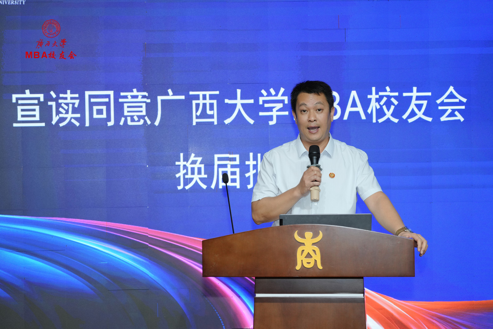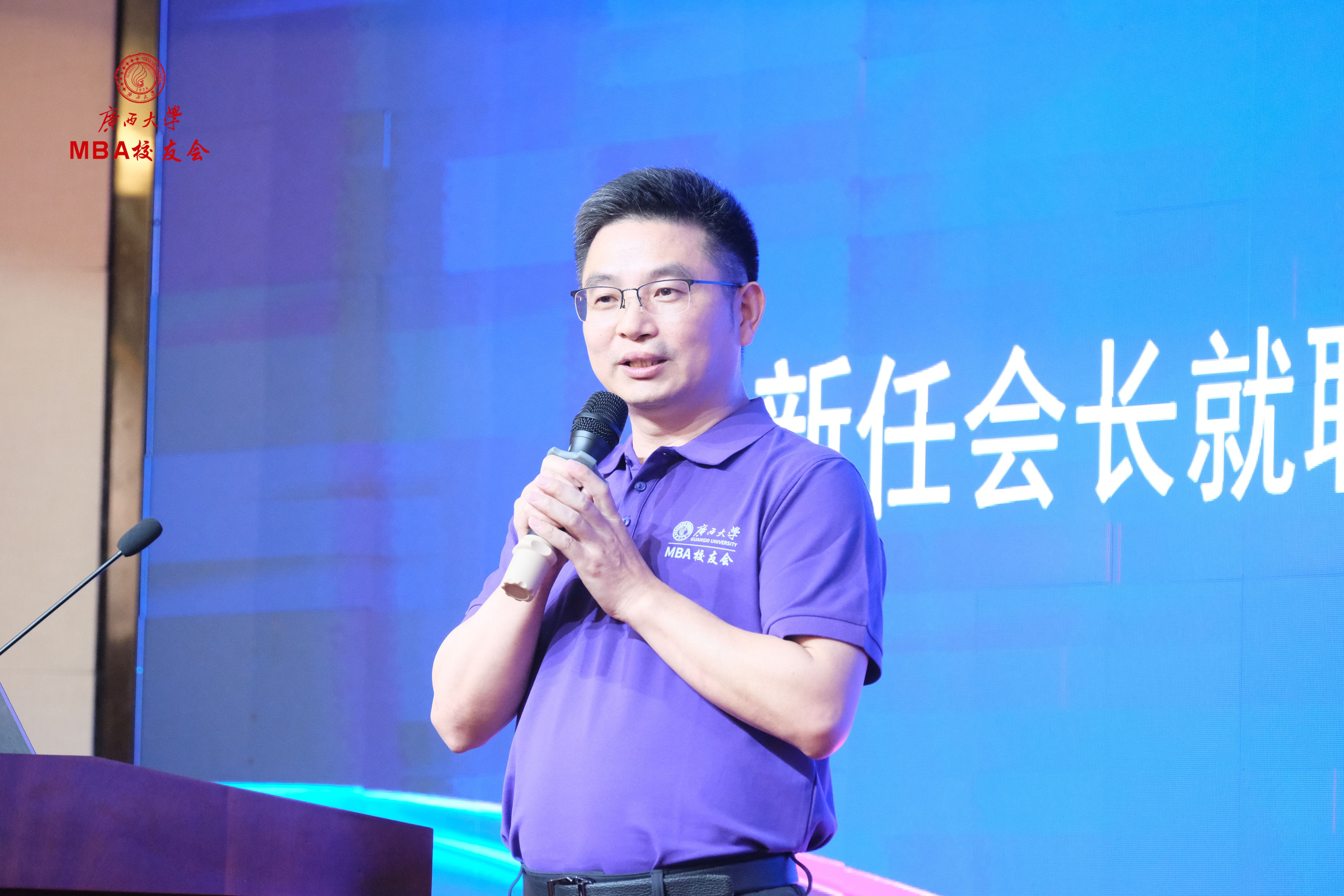 他指出,伟大的校友才能成就伟大的母校,广西大学之所以有今天的声誉,主要归功于校友们在各条战线上辛勤耕耘,在各个领域发光发热,为国家经济社会发展作出的贡献。他希望广大校友以“事不避难者进,志不求易者成”的决心,担当进取,踔厉奋发,在共同的价值追求、文化认同和情感基础上,相互协作,依托渠道,不断壮大校友会规模、丰富校友会内涵,提升校友会影响力,将MBA校友会打造成学校加校友发展共同体,汇聚起推动学校发展的磅礴力量。