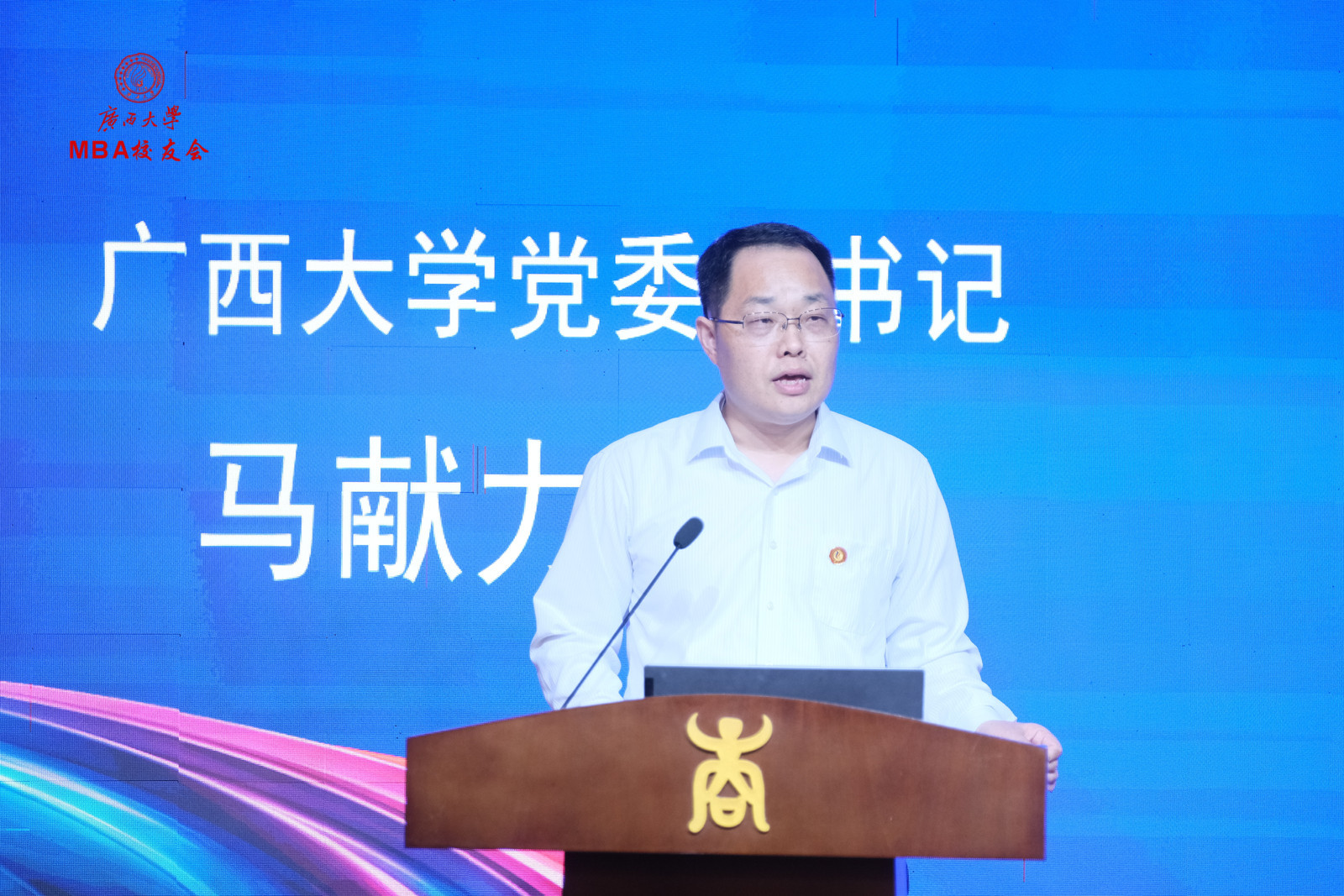广西大学党委副书记马献力代表学校向大会的顺利召开和新当选的MBA校友会新一届组织机构成员表示祝贺,对上一届MBA校友会组织机构成员的付出和全体校友一直以来对母校的关心和支持表示感谢。
