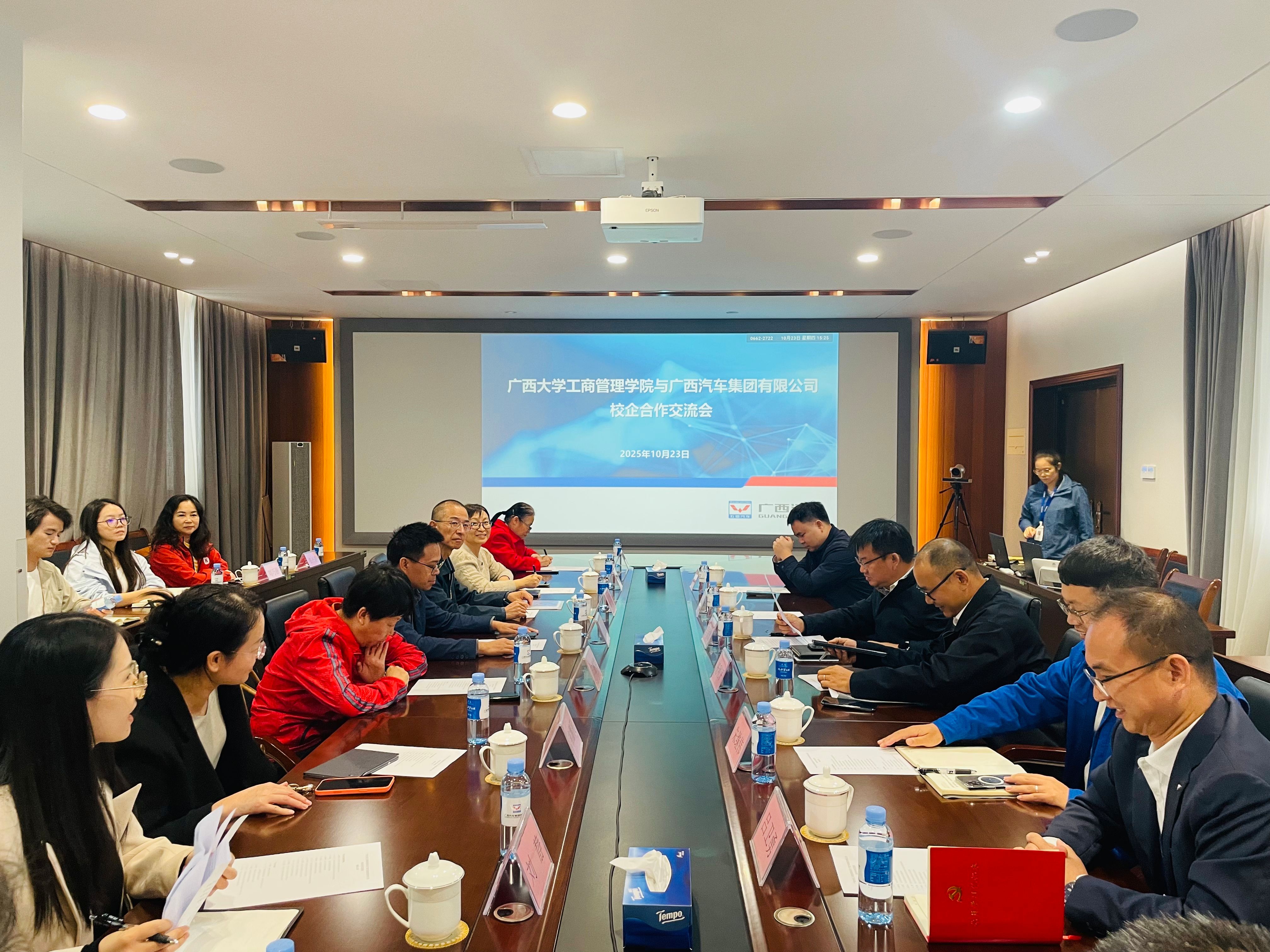 走进广西汽车集团,调研团首先参观集团总部展厅,随后围绕校企合作展开座谈。座谈会由集团党委组织部部长李钦德主持,他系统阐述了企业人才培养战略布局及汽车产业绿色发展政策导向;覃朝勇主任则介绍了近期学科建设成果及培训业务重启规划,提出以此次交流为契机,推动校企在定向人才培养、双碳领域专项研究、产业案例联合开发等方面达成实质性合作。会上,广西汽车集团其余代表人员详细解读了企业落实碳中和政策的具体路径与阶段性目标,以及围绕碳排放全流程管理、关键环节减碳技术应用等实践内容作深入分享,为师生搭建起“政策-实践”的认知桥梁。