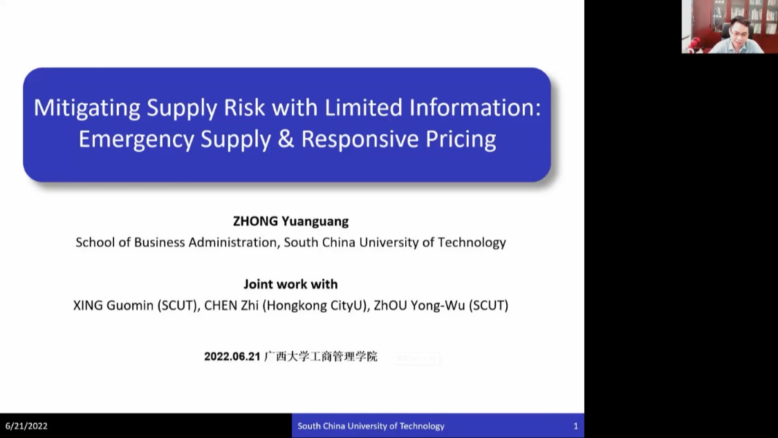 师生们分享他的论文成果——“Mitigating Supply Risk with Limited Information: Emergency Supply and Responsive Pricing”。滨海湾金沙赌场