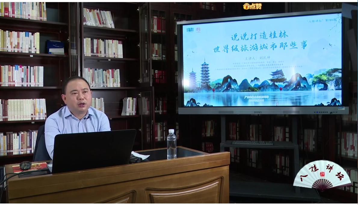 刘民坤教授应邀做客广西壮族自治区图书馆“八桂讲坛”,以“说说打造桂林世界级旅游城市那些事”为题进行了学术分享。由于受到疫情影响,本次讲坛以线上直播的方式进行。