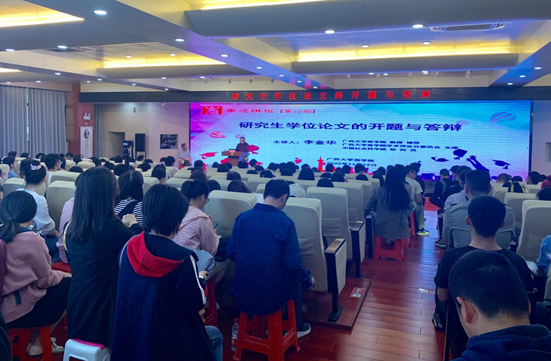 的教师,以及各个专业的博士与硕士,踊跃参与讲座。讲座主要从以下五个方面展开:选题与开题;论文的逻辑;论文的摘要;论文的细节;论文的答辩。李教授关于研究生学位论文的开题与答辩的报告受到了广大研究生的欢迎,使师生在确定论文选题时有了更明确的方向和思路,此次报告现场座无虚席,彰显了浓厚的学术氛围。