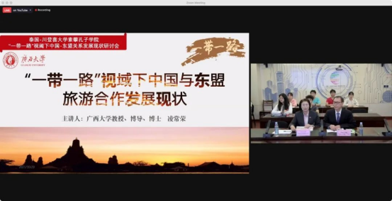 联合川登喜大学国际(中国-东盟)商务系共同举办2021年“一带一路”专题讲座暨研讨会,对后疫情时代中国与东盟在经贸、旅游、教育、文化等领域的合作与发展议题进行充分研讨。川登喜大学董事会主席塔诺姆·尹塔拉坤讷博士(Dr. Tanom Intarakumnerd)在研讨会上作主旨发言,特邀专家、广西大学凌常荣教授主讲题为《“一带一路”视阈下中国与东盟旅游合作发展现状》的学术讲座。研讨会由川登喜大学副校长潘查妮·高娜博士(Dr. Pornchanit Kaew-nate)主持,川登喜大学部分校领导、二级滨海湾金沙赌场