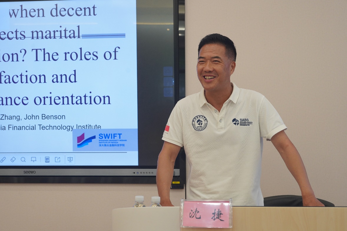 在探讨“体面劳动”主题时,沈捷教授深入解析了其内涵,指出体面工作不仅涉及高薪和职业稳定性,还包括优质的工作环境、职业发展机会以及工作与生活平衡等多方面因素。他阐述了这些因素如何共同塑造体面劳动,并通过工作满意度的中介作用对婚姻满意度产生影响,而南北文化差异则是这些变量关系的重要调节因素。